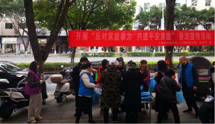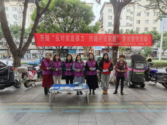 11月25日是“国际消除家庭暴力日”,为切实预防和制止家庭暴力,进一步增强辖区广大居民反家暴的意识,提高妇女及家庭成员学法、知法、守法、用法的能力,促进对妇女儿童权益的保护,介福路街道妇联以“反对家庭暴力,共建平安家庭”为主题,组织辖区派出所、司法所、综治办及七个社区妇联主席、巾帼志愿者在办事处门前开展普法宣传集中宣传活动。