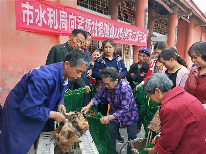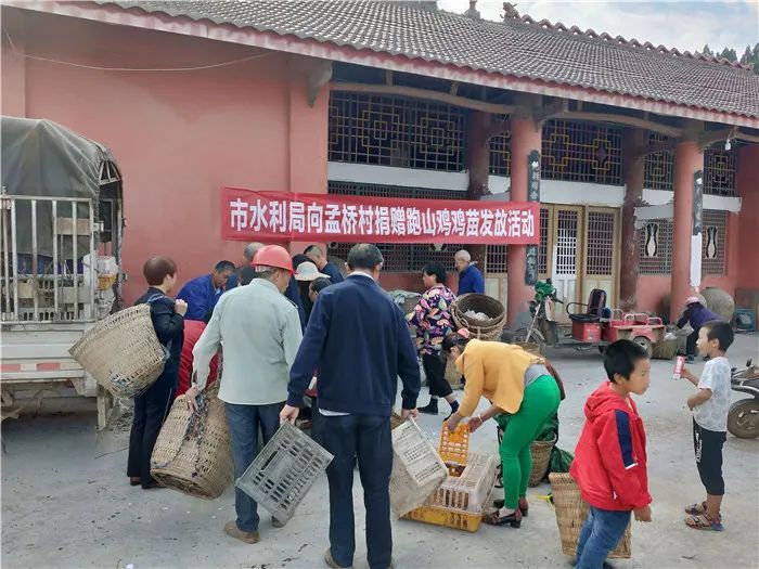 5月10日上午,永兴镇孟桥村村委会前的院子比往日热闹了许多,市水利局为该村送来“爱心鸡苗”,助力村民增收致富。