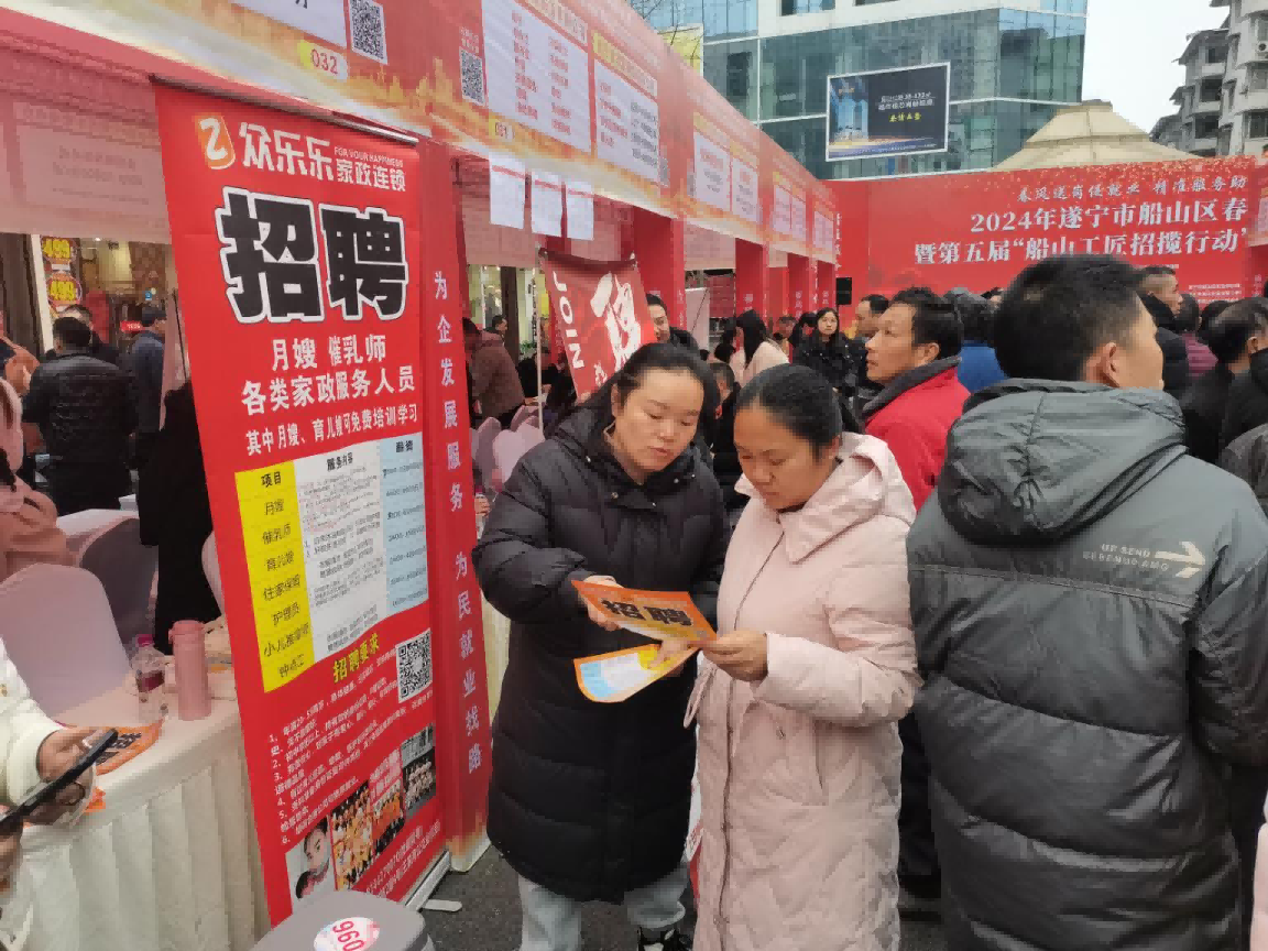 为实现更高质量的就业目标,进一步帮助城乡劳动者就业创业,同时保障企业用工需求,助力2024年就业工作“开门红”,2月27日,遂宁市船山区人力资源和社会保障局联合区直相关部门单位举办了2024年遂宁市船山区春风行动暨第五届“船山工匠招揽行动”专场招聘会。
