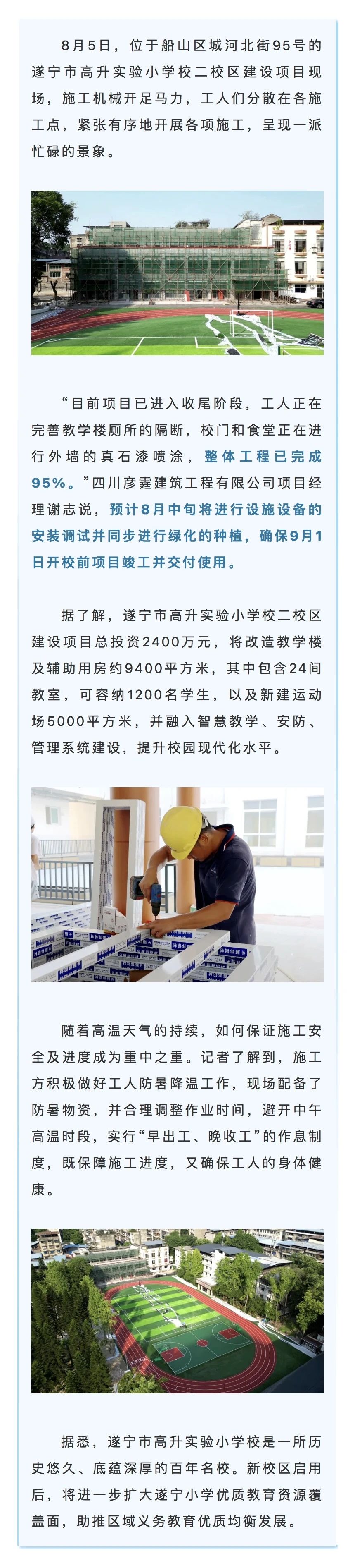 【项目攻坚年 成效大比拼】总投资2400万元 遂宁市高升实验小学校二校区建设进入收尾阶段