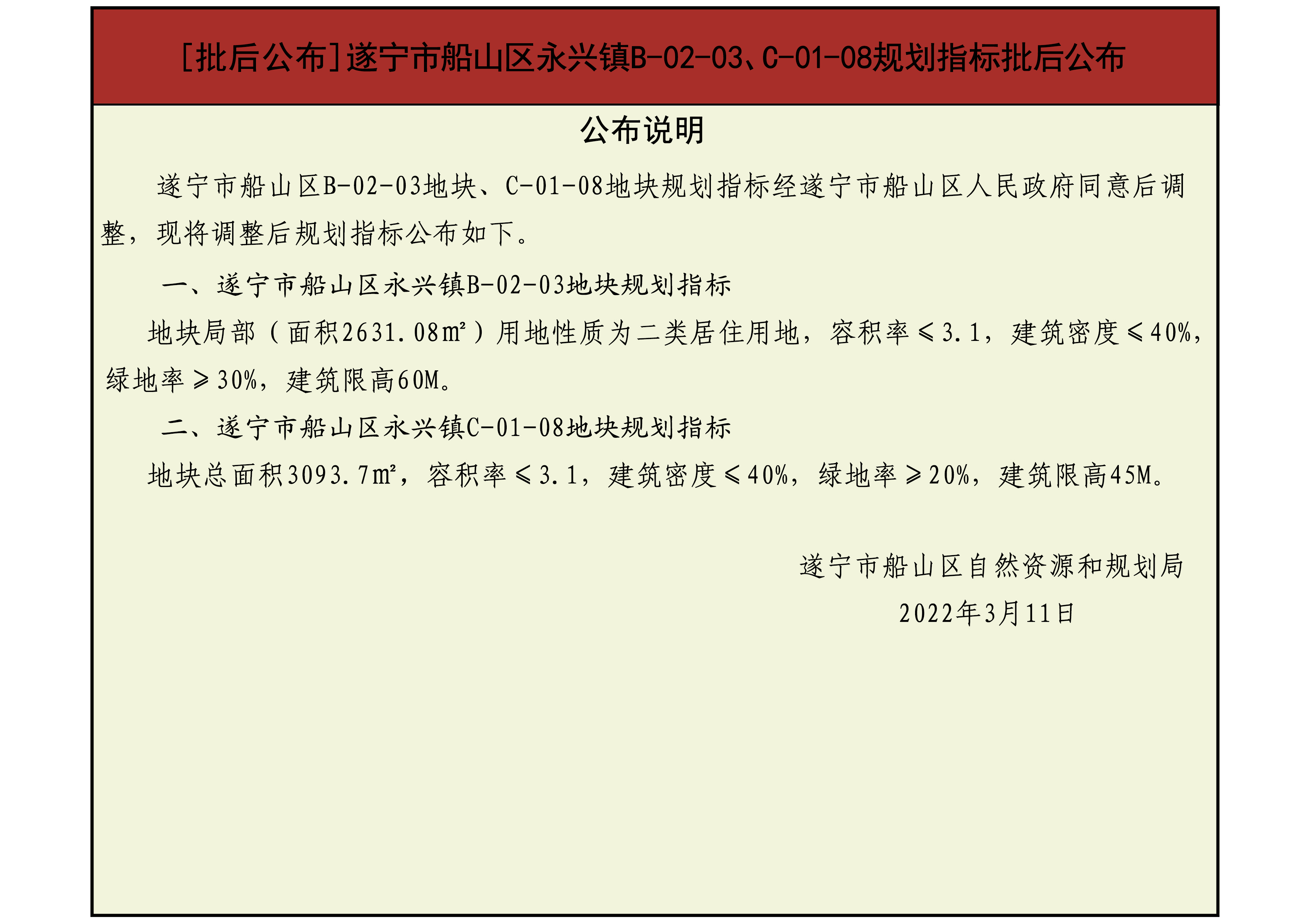 [批后公布]遂宁市船山区永兴镇B-02-03、C-01-08规划指标批后公布