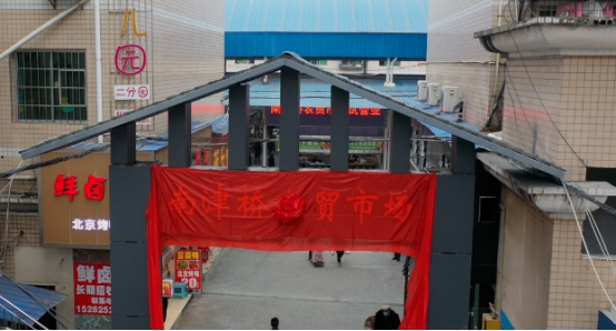 南津桥农贸综合市场历时三个月时间建成,占地5000平方米,市场核心区域设有192个摊位,以蔬菜类、畜禽肉类、豆制品类、熟食腌卤类、农产品自产自销等摊位为主,其中蔬菜类摊位约90个,肉类摊位约40个。外围商家约63个,现以售卖畜禽肉类、水产品、加工产品、干货调味品和冻鲜产品为主。在市委市政府、区委区政府的密切关注下,今年8月中旬遂宁兴船实业有限公司开始动工建设南津桥农贸市场,完成了地下管网、雨污分流改造,同时对道路美化亮化工作进行改造,对摊位进行重新砌筑、分区改造,对大棚进行修复,使南津桥农贸市场的环境卫生、交通过道变得整洁通畅,布局更规范、颜值更靓丽。