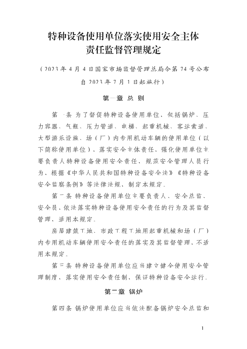 特种设备使用单位落实使用安全主体责任监督管理规定