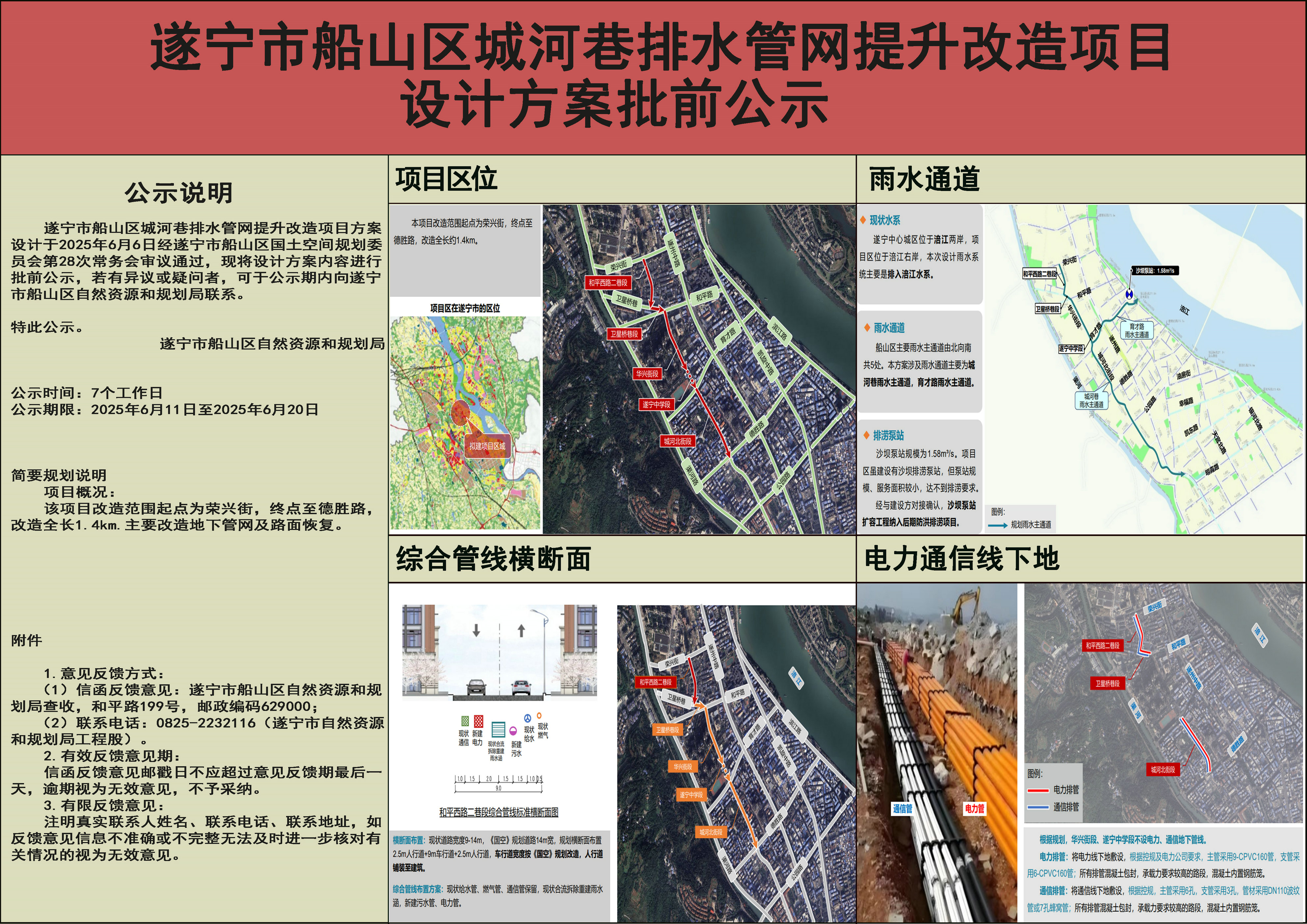 遂宁市船山区城河巷排水管网提升改造项目设计方案批前公示