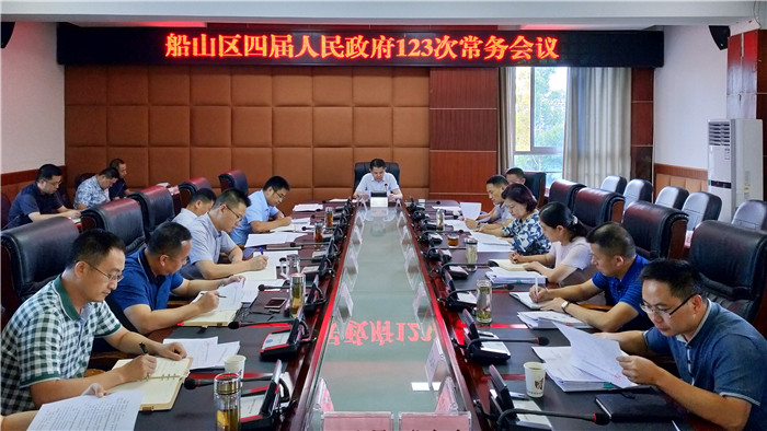 9月3日,区委副书记、区长韩麟主持召开船山区四届人民政府123次常务会议。区委常委、常务副区长向诚,副区长郑良、吴强、毛金花、任参参加会议。区人大常委会副主任廖亮、区政协副主席任晓敏列席会议。