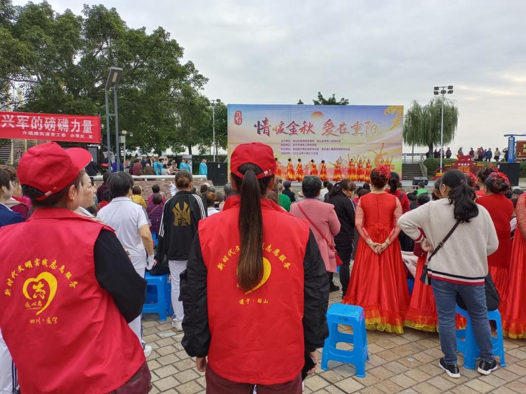 为引导广大群众践行社会主义核心价值观,提高尊老意识,传承尊老、敬老、爱老、孝老的传统美德,倡导爱老、助老的社会风尚,2023年10月23日,介福路街道北河街社区在犀牛堤广场开展了“情暖金秋 爱在重阳”文艺汇演活动,以群众喜闻乐见的形式丰富辖区居民的文化娱乐生活。
