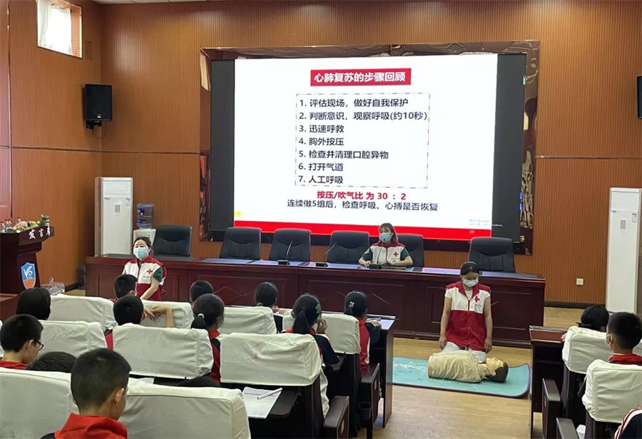 近日,新盐市街小学邀请遂宁市第三人民医院急诊科医生,对师生们进行应急救护知识培训,普及应急救护、防溺水等基本技能,并对救护操作过程进行现场示范。
