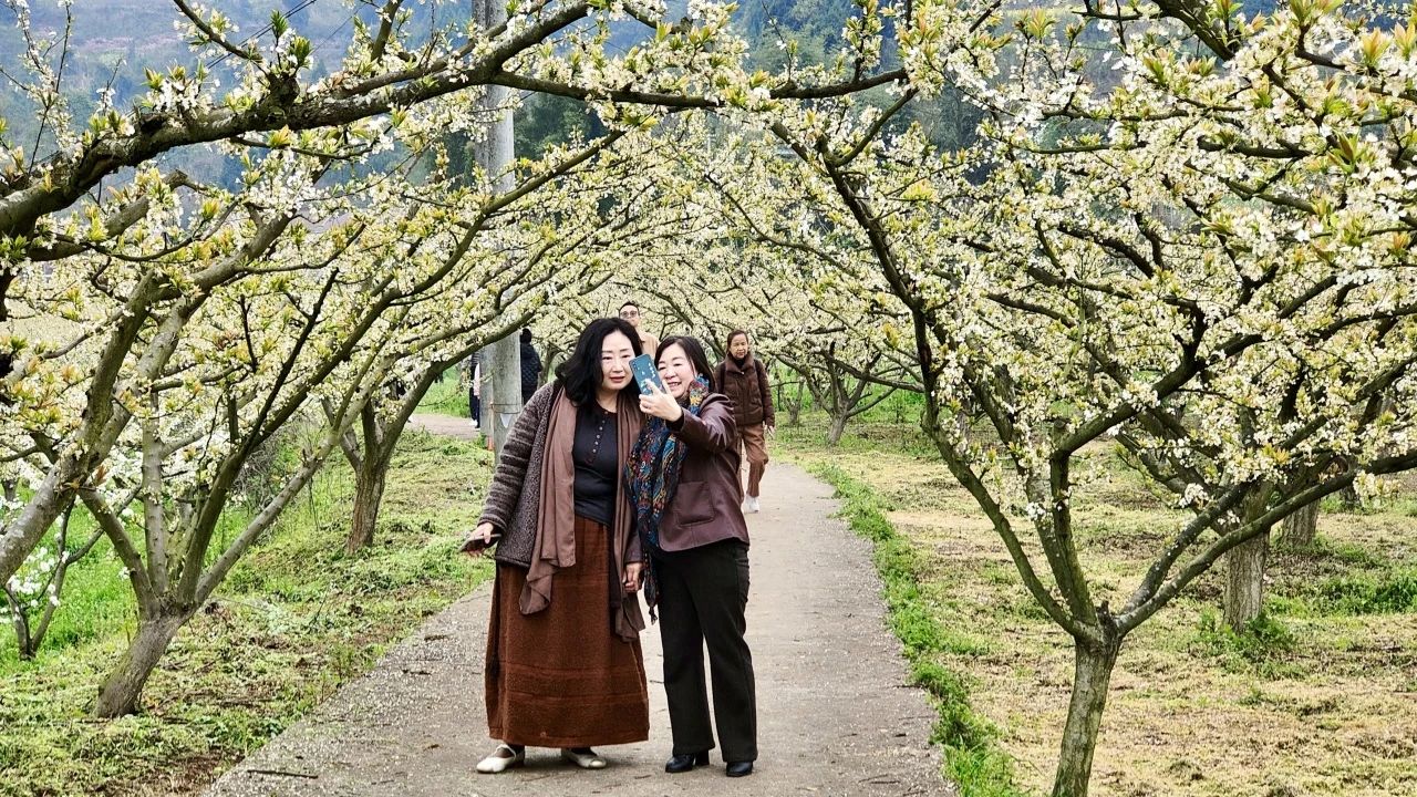 同样被美景吸引的还有游客詹莉,她开心地说:“春分过后万物复苏,这边环境特别好,桃花、李花、油菜花都开了,我们就约着三五好友过来野餐。沿途风景美如画,桃花、李花竞相争艳,新农村的房子也特别漂亮,真是个踏青、赏花、放松心情的好地方。”