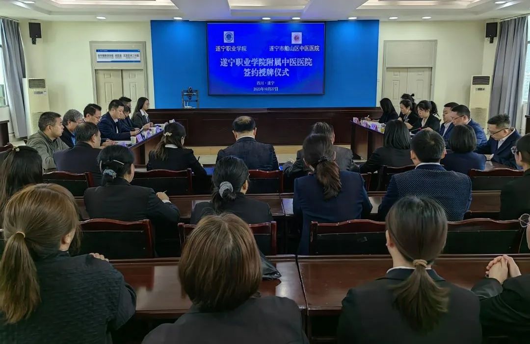 会上,遂宁职业学院、船山区中医医院签订了战略合作协议并现场授牌。