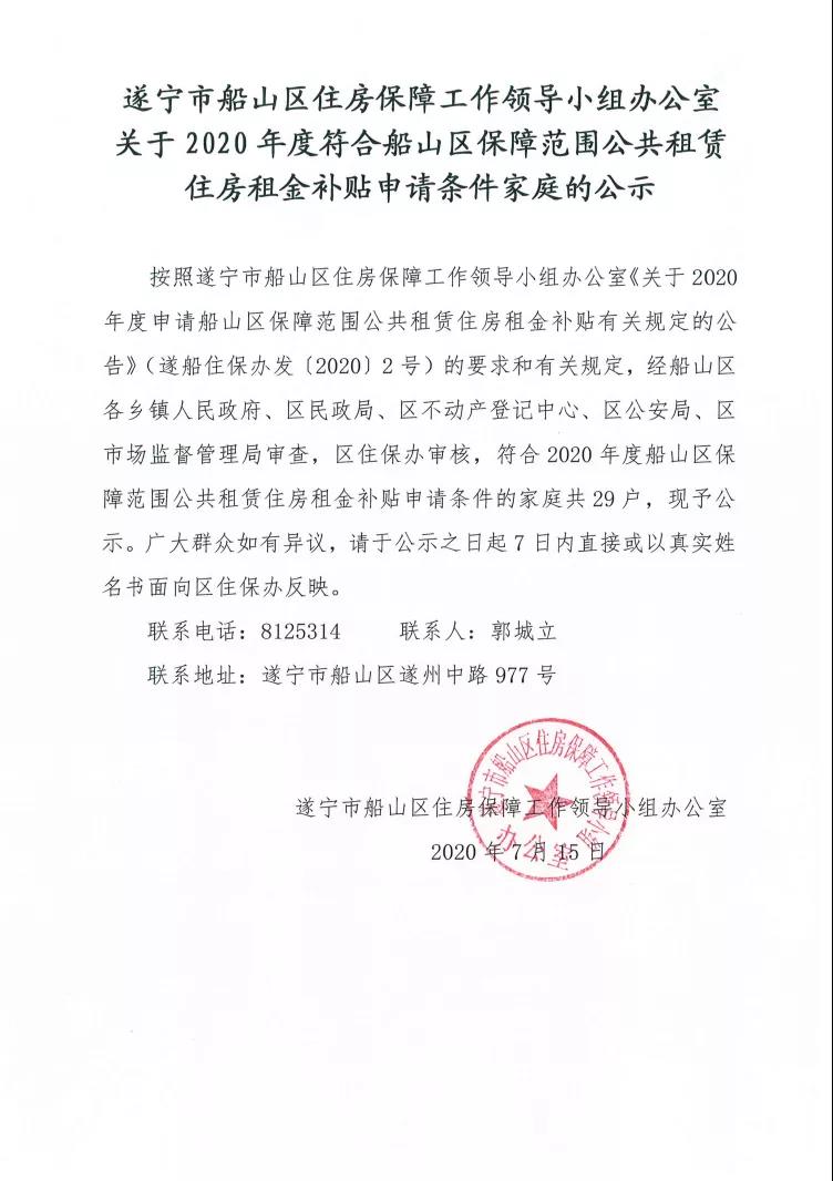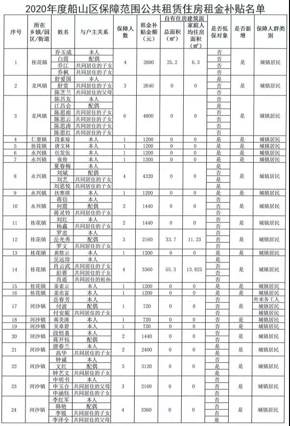 船山区2020年度符合公租房租金补贴申请条件的家庭名单公示了!