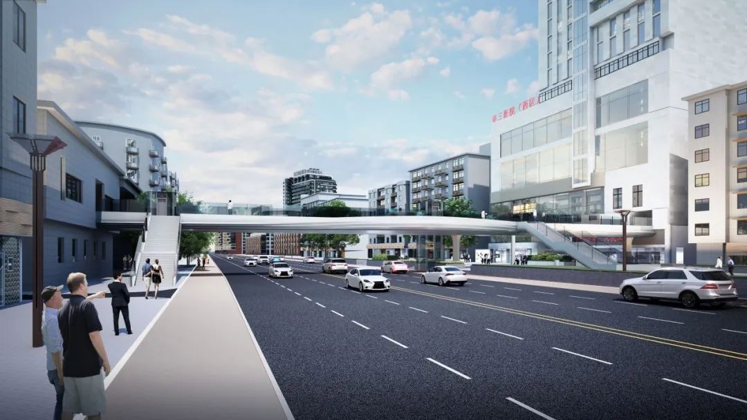 基于此,结合河西主污水通道建设项目中遂州路整体改造规划,遂宁市第三人民医院处人行天桥横跨遂州路,主要服务于学生及居民过街,同时兼具连通市三医院东西院区功能。