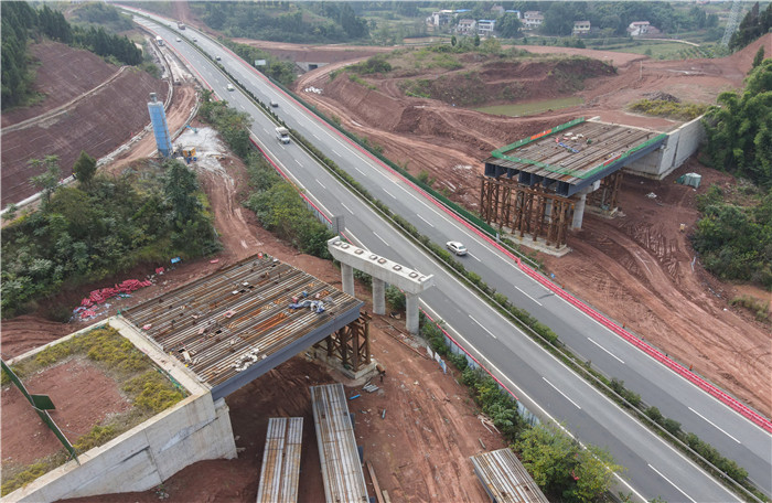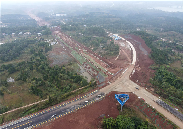 截至目前,景观大道三段路基、雨污水管网施工已全部完成,将立即进行路面施工。金安大道软基处理和砂砾石层施工已全部完成,将立即进行土方填筑。龙凤学校项目装饰装修、消防安装、水电气接入已全部完成,正在进行运动场亮化,即将进行初步验收。G93遂绵高速公路龙凤互通式立交项目已完成连接线、收费站、收费棚建设,正在进行跨线钢箱梁吊装。飞地园区项目,中环线西延线正在进行雨污水管网和平交口施工;标准厂房一期场平基本完成,即将进入桩基施工。通港大道正在抓紧实施全段施工,其中A段完成路基土石方80%、涵洞工程100%、桥梁下部结构80%;BC段路基完成100%,路面施工已完成75%。