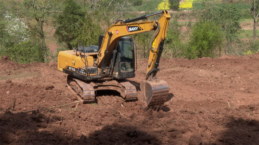 日前,记者在桂花镇黄龙村4社低效经果林改造施工项目现场看到,多台挖掘机在田间来回作业,伴随着机器的阵阵轰鸣声,大块土地被开垦翻整,变得规整有序,现场一派紧张有序、干劲十足的整理景象。