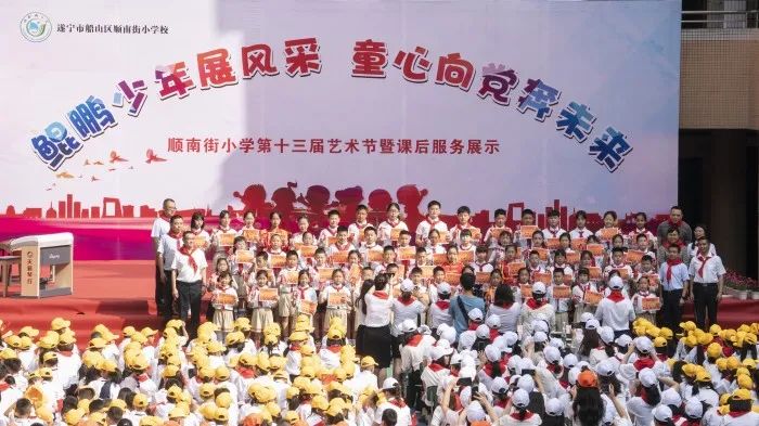 据了解,此次顺南街小学校“鲲鹏少年展风采 童心向党奔未来”第13届艺术节暨课后服务展示活动由区委统战部、致公党遂宁支部主办,区教体局、区人大常委会社会建设工作委员会、区知识分子联谊会、顺南街小学校承办,遂宁欧美同学会协办,旨在展示近年来船山区在“双减”背景下不断探索课后服务活动发展取得的丰硕成果。下一步,船山区还将积极引导全区各学校抓住开展课后服务活动的契机,发挥各校办学优势,结合学生们的实际需求和兴趣爱好,不断优化服务项目,拓展服务深度和广度,为全区学生提供更加优质的课后服务,使每个孩子的潜能得到发挥,个性得到飞扬。