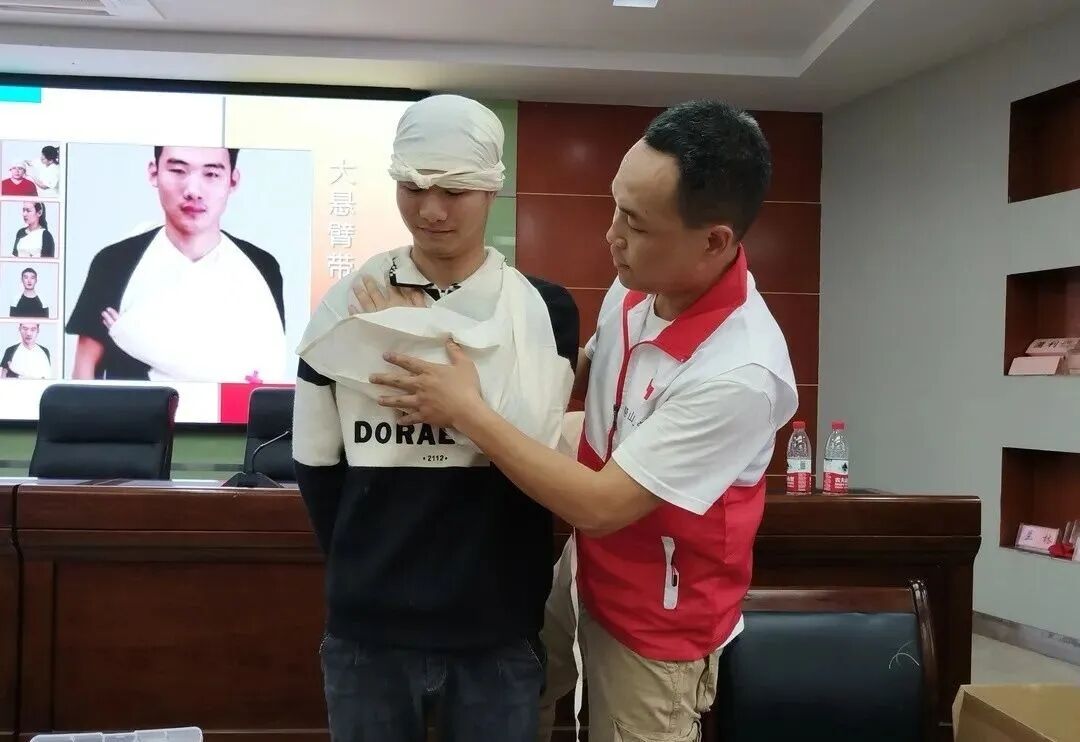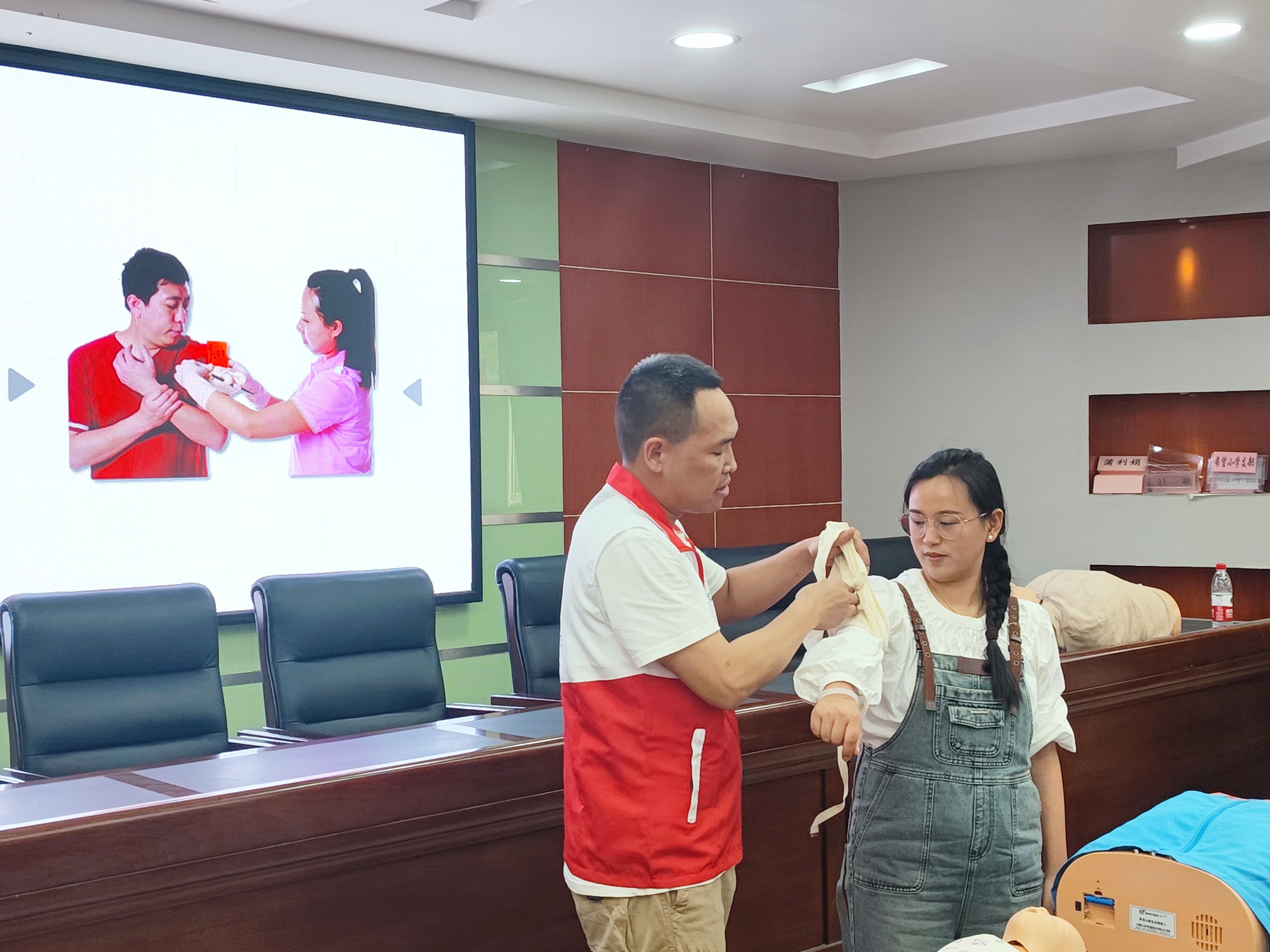此次培训采取理论与实践相结合的方式,船山区红十字会的培训老师深入浅出地讲解了心肺复苏各个环节的操作要领、AED除颤仪的正确使用方法,以及创伤多项包扎技术、气道异物梗阻和意外伤害的处理等应急救护知识。培训中,各校园相关参训老师模拟进行了心肺复苏及创伤包扎的实际操作,力争每个动作标准规范,确保真正掌握相关操作流程和要领,为平安校园增添一道安全防线。