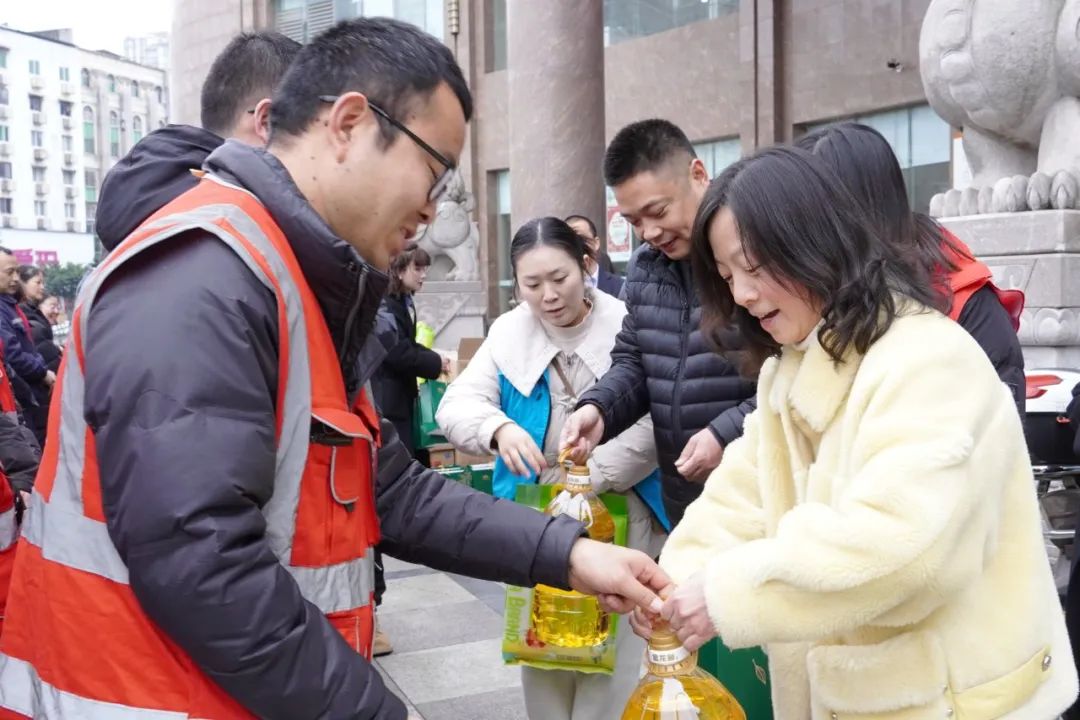 1月18日,船山区总工会2024年冬送温暖启动仪式暨现场送温暖慰问活动在遂宁农商银行总行工会驿站举行,现场为120名职工代表送上米、面、油等慰问品,并为他们送上新春祝福。