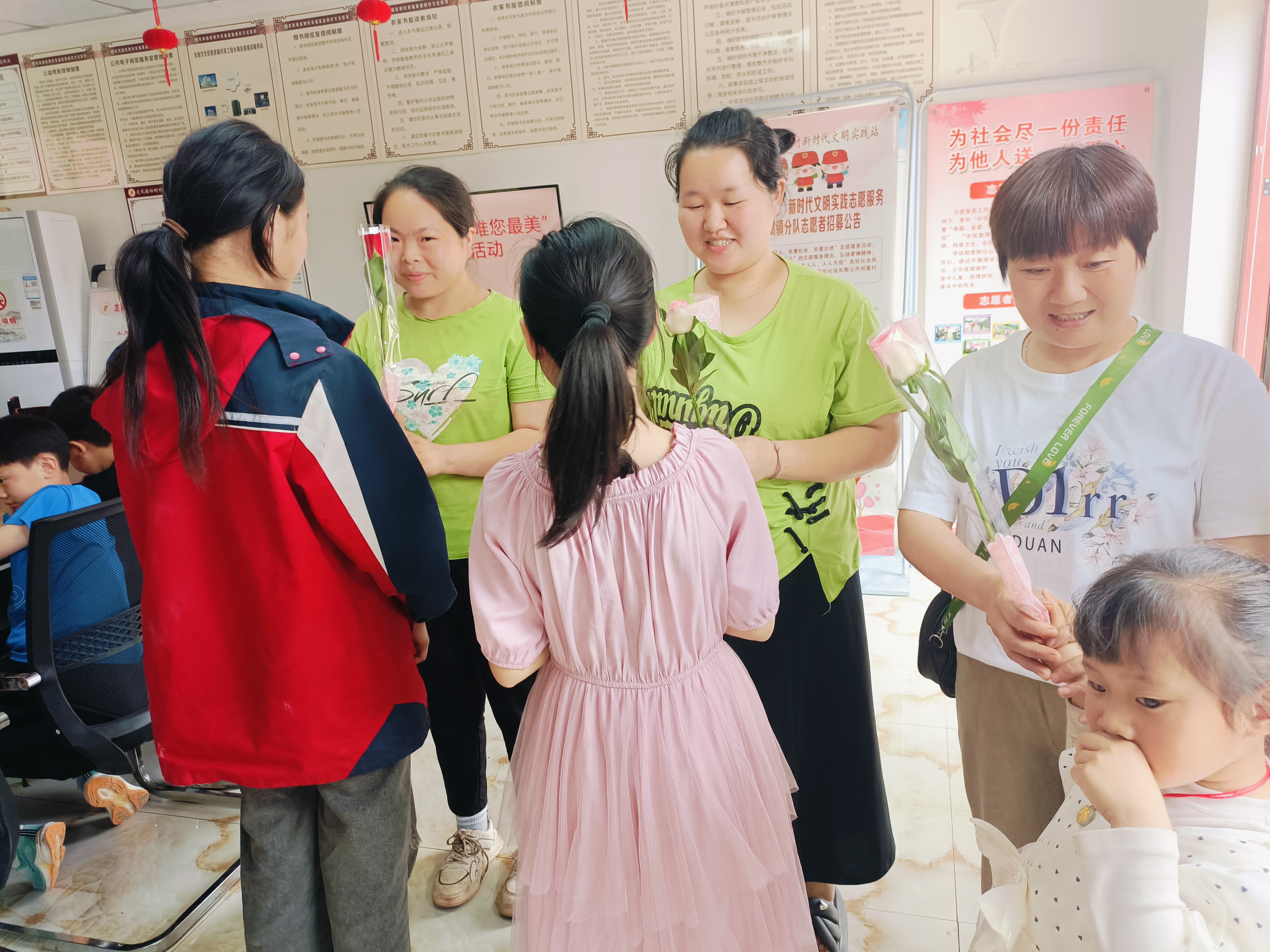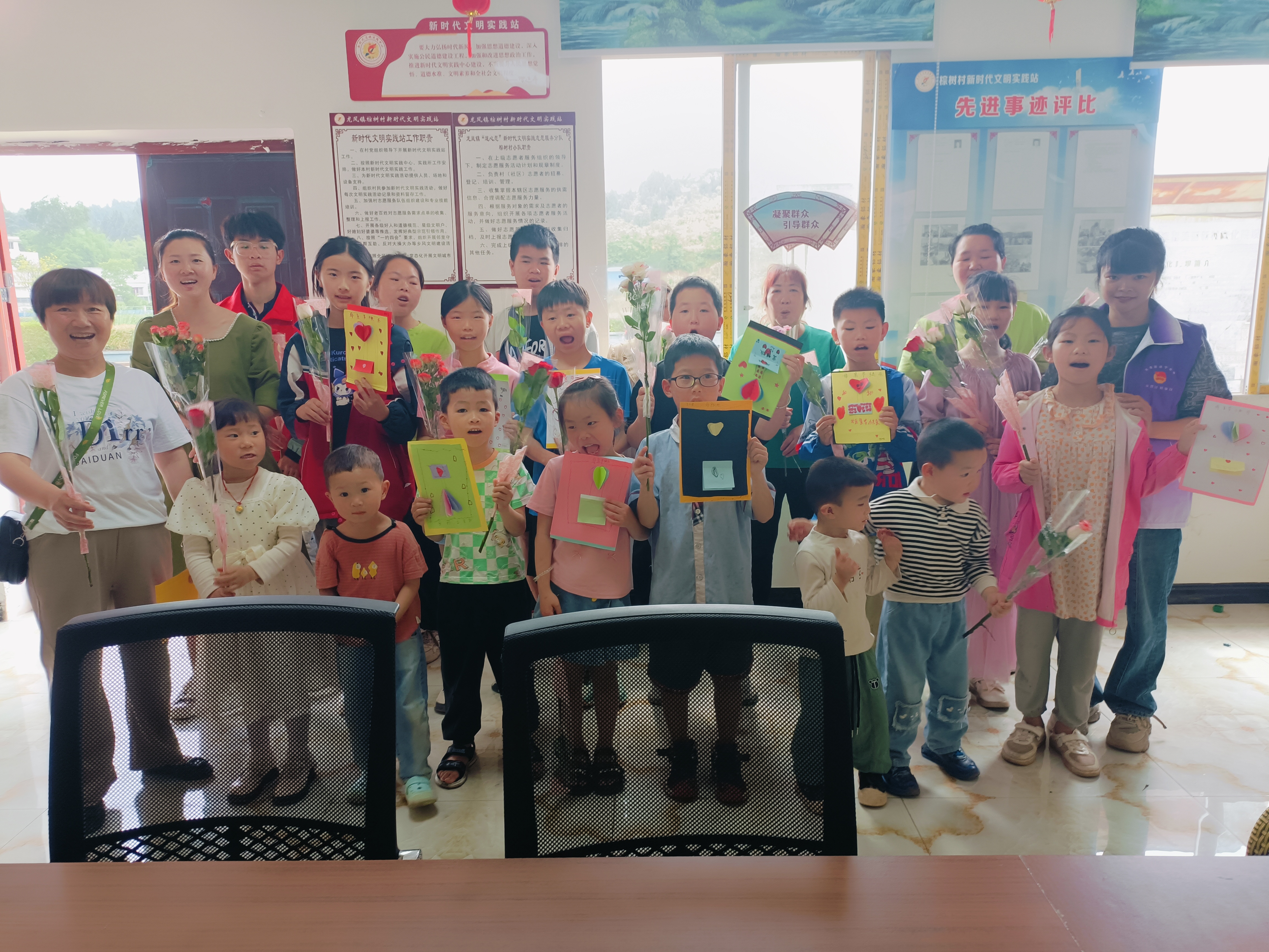 5月12日上午,龙凤镇棕树村开展主题为“时光献礼唯您最美”的母亲节亲子活动,参加现场活动的有学生17人、家长8人、志愿者1人。活动内容:1.学生手工制作爱心折纸写下对妈妈的爱心语录。2.学生现场向参与活动的母亲送上母亲节玫瑰花束,表示对妈妈节日的祝福。3.未参与活动的母亲们,由现场参与活动的学生带回小礼品、玫瑰花束和手工折纸送给妈妈。4.一起合影留念。
