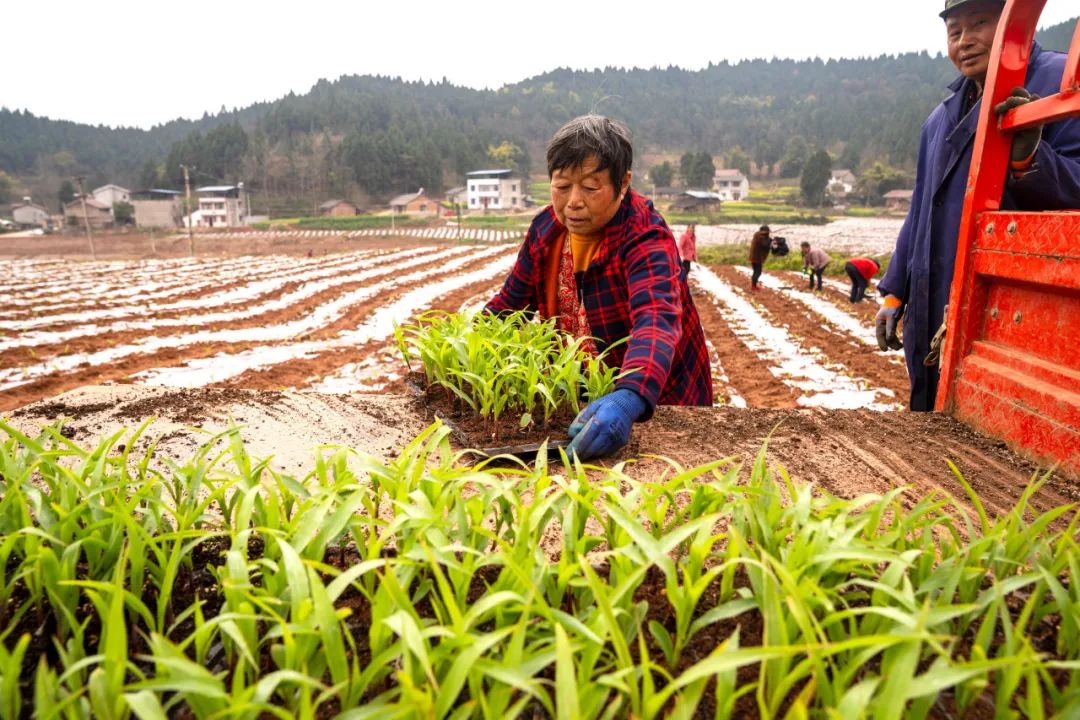 “这两天抢抓天气和时间,开始大面积栽种玉米苗,预计还有10多天将完成300亩的玉米苗栽种工作。”罗其全说,2021年起,他创办了家庭农场,在新开村流转了300余亩土地,主要种植玉米、蔬菜,按照一年两季玉米和一季蔬菜轮种模式,年产量能达到100万余斤,种出的玉米、蔬菜畅销成渝两地。
