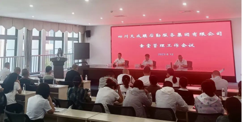 2023年6月12日,四川天成蹊后勤服务集团有限公司在公司二楼会议室召开食堂管理工作会议,区政府食堂、纪委食堂、市场监管局食堂、公司食堂等全体工作人员参加会议。遂宁市天泰实业有限责任公司监事会主席代星出席会议并作重要讲话。