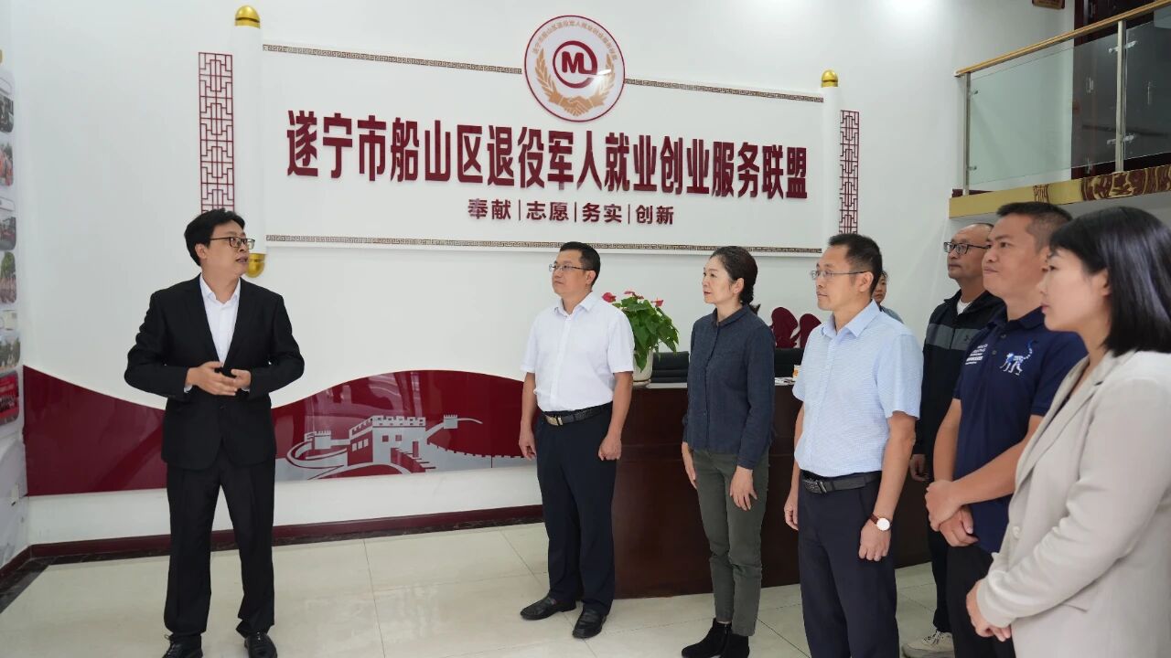 调研组一行先后来到船山区光荣院、船山区退役军人服务中心、遂宁市船山区退役军人就业创业服务联盟、船山区国防教育馆,实地察看抚恤优待政策落实情况。船山区光荣院以“让优抚对象安享幸福晚年”为目标,打造温馨居住环境,配备专业护理人员24小时照料,还结合优抚对象身体与兴趣,定期组织健康体检、文化娱乐及红色主题教育活动,让老兵感受家的温暖。船山区退役军人服务中心、遂宁市船山区退役军人就业创业服务联盟聚焦急难愁盼,推行“一窗受理、集成服务”,设政策咨询、就业帮扶等窗口,建“一人一档”台账,开通线上平台,让退役军人足不出户办业务,按下效率“快进键”,提升服务便捷性与覆盖面。船山区国防教育馆作为拥军优属重要阵地,通过图文、实物等形式普及国防知识,营造尊崇军人、支持国防的浓厚氛围。