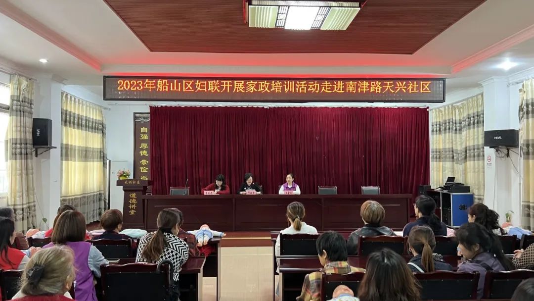 为倡导和吸引广大返乡妇女就近创业就业,提升妇女的工作技能,增强妇女的就业能力,日前,船山区妇联在南津路街道天兴社区新时代文明实践站,开展了一场别开生面的巾帼创业就业家政培训活动。