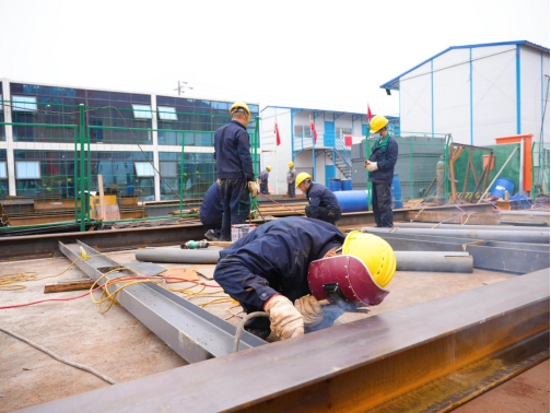走进项目施工现场,数辆工程车来回穿梭,污泥干化焚烧设备区主要设备基本全部到场,工人们配合有力地进行焊接安装作业。截至目前,污泥处置厂项目已经顺利完成86%土建标段和73%生产标段的建设,该工程的综合附属用房、污水处理附属用房、仓库及维修车间、除臭车间、消防水泵房已建设完成。