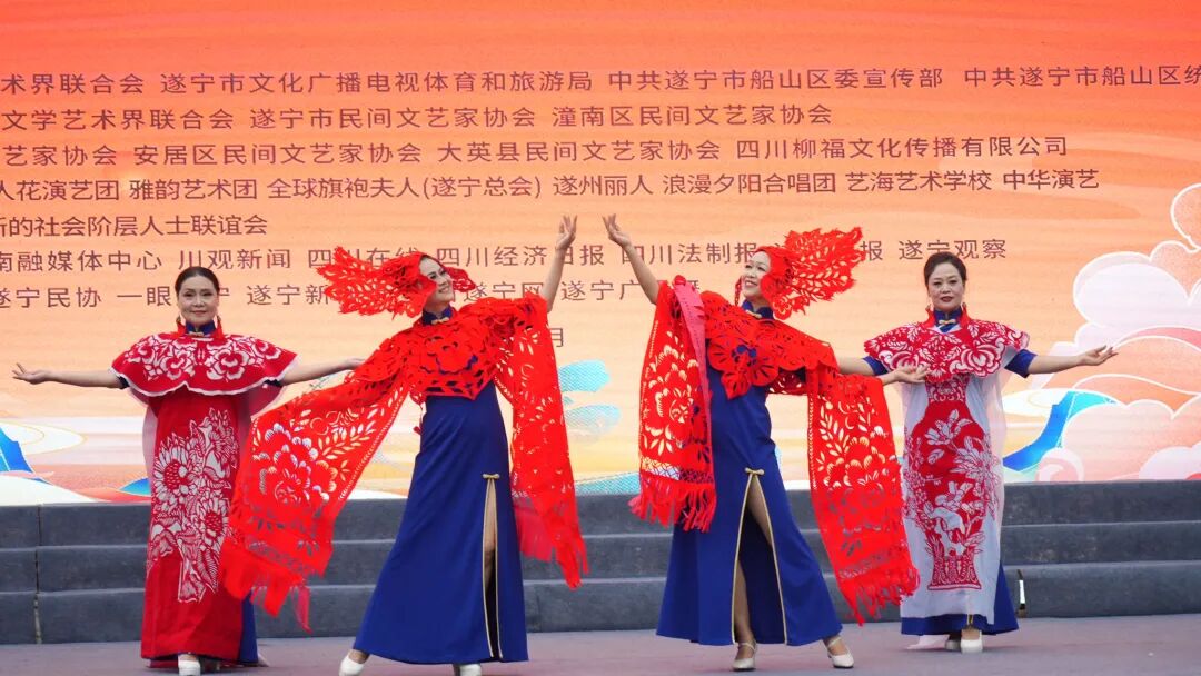 为传承弘扬优秀民间文化、深化遂潼文化交流、推动巴蜀文化旅游走廊建设,9月30日,“锦绣华章76载・艺韵遂宁40年” 第二届遂宁市民间艺术展演在遂宁市船山区犀牛广场精彩启幕。