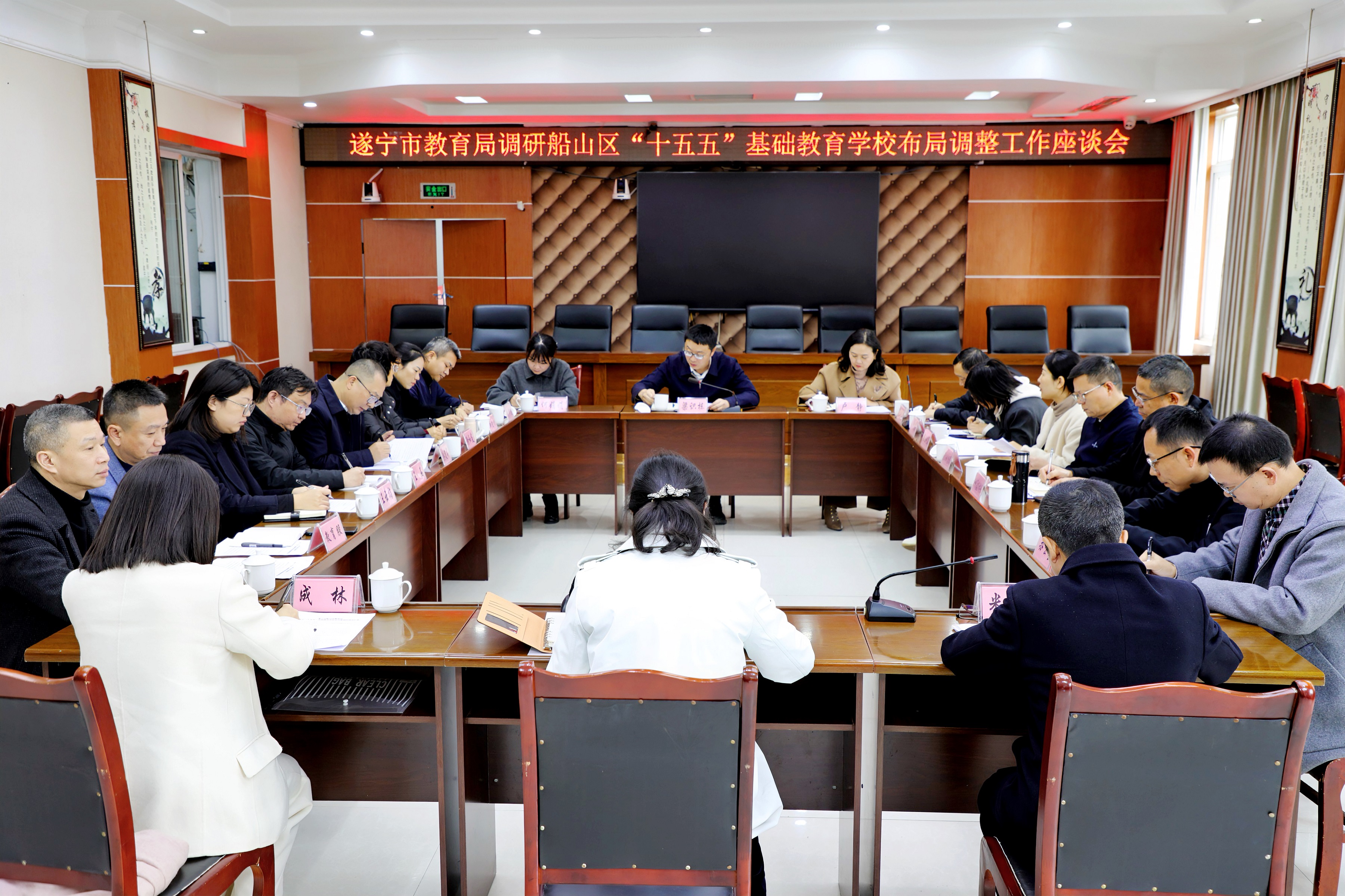 座谈会上,区教育局汇报了船山区“十五五”基础教育学校布局规划情况,区住房城乡建设局、区自然资源和规划局、区发展改革局、市公安局船山区分局等部门分别进行交流发言。