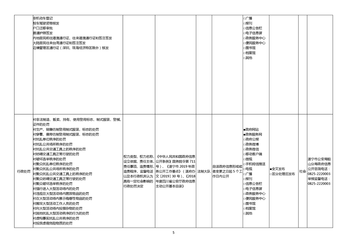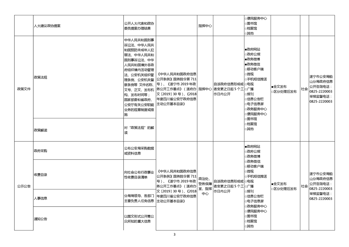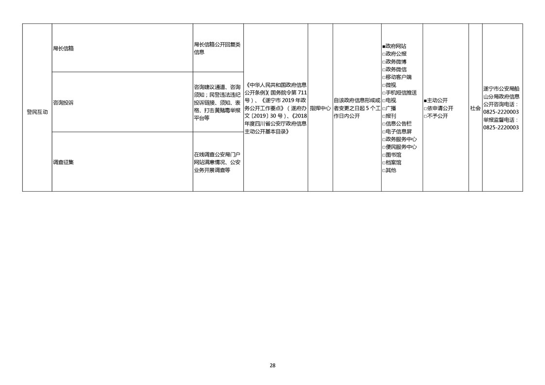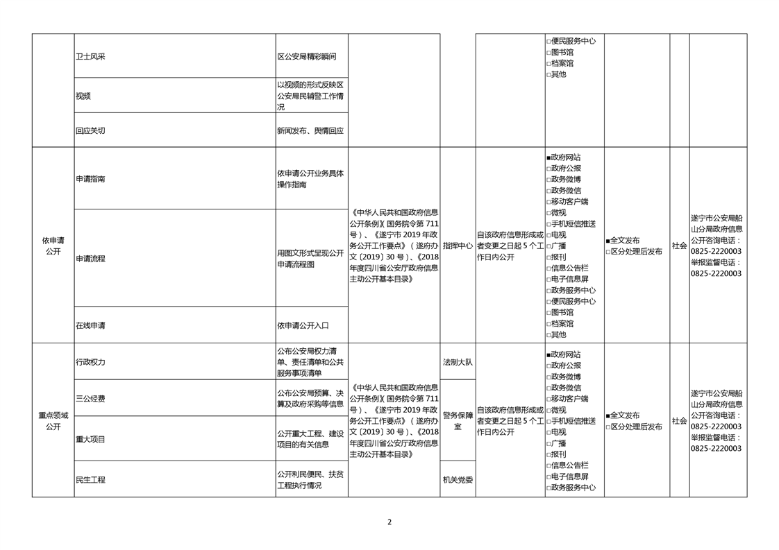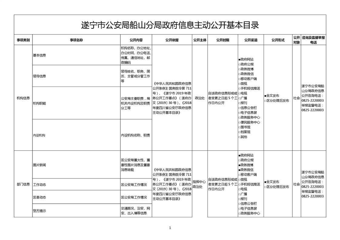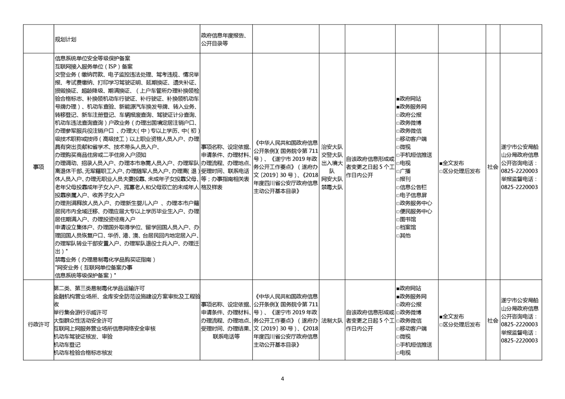 遂宁市公安局船山分局政府信息主动公开基本目录