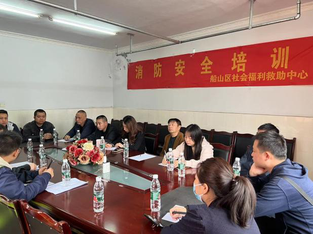 为做好安全生产工作,建立有效地防范和处理火灾事故的工作机制,增强养老机构员工和院内老人在遇到火险时逃生、自救能力,船山区民政局于3月26日组织全区养老机构到船山区社会福利中心开展消防演练活动。