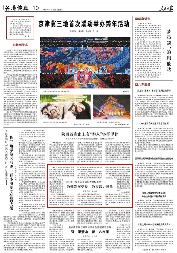 2025年1月2日,《人民日报》第10版,以《四川遂宁船山区推动教师岗位改革——教师发展受益 教育活力释放》为题,报道了船山区推动教师岗位改革工作。全文如下: