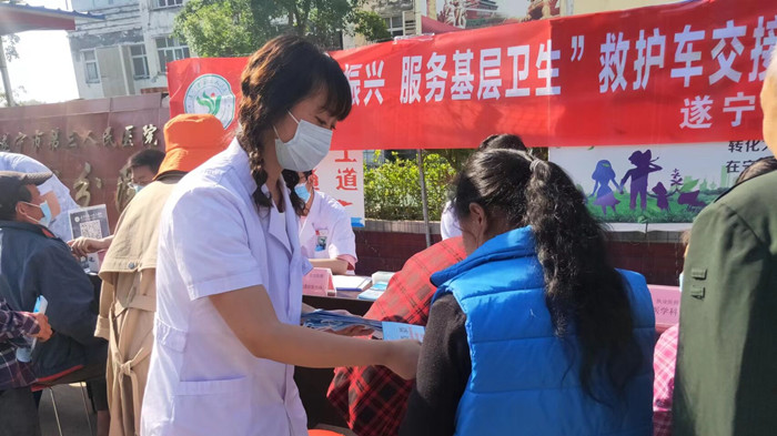 近日,遂宁市第三人民医院医疗专家团队来到唐家乡卫生院,开展救护车交接、专家教学查房、联合义诊等系列活动,切实增强基层群众的健康获得感。
