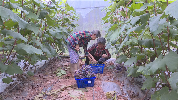近日,记者在老池镇芋禾村看到,一群村民正在船山区锦之源种植专业合作社的葡萄大棚里采摘葡萄,一派忙碌的劳动景象。
