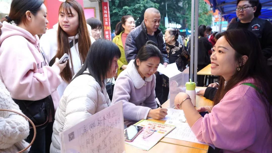 活动现场人潮涌动,求职者积极参与,热情高涨。现场有遂宁新都、迪枫服装、金辉保安、邦泰物业、高金食品、礼季酒店等38家企业参加招聘,提供导购、店长、厨师、缝纫工、人事、收银员、主播、保安、普工等岗位1063个。