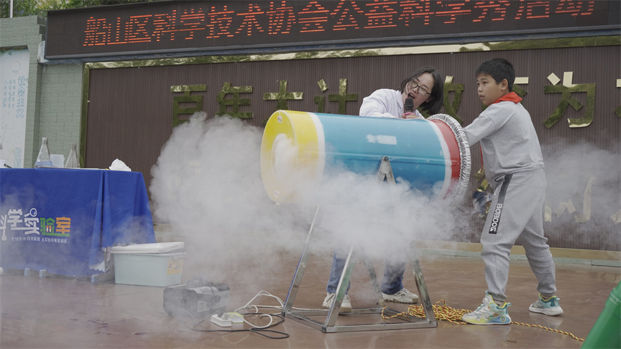 活动现场,科普老师通过魔法水杯、液氮烟雾、火焰掌、乒乓球机关枪、空气大炮等为同学们展示了科学的“魔法”,让同学们从中学习到了不少科学知识。整个过程中,大家认真观看,积极参与,通过亲自动手实操,体会到了科学带来的无穷乐趣,为自己的科技梦想插上了腾飞的翅膀。