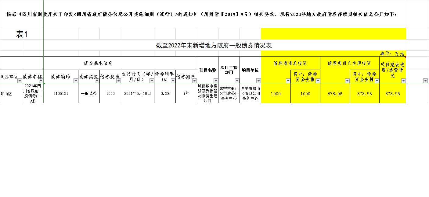 船山区新增地方政府债券存续期信息公开