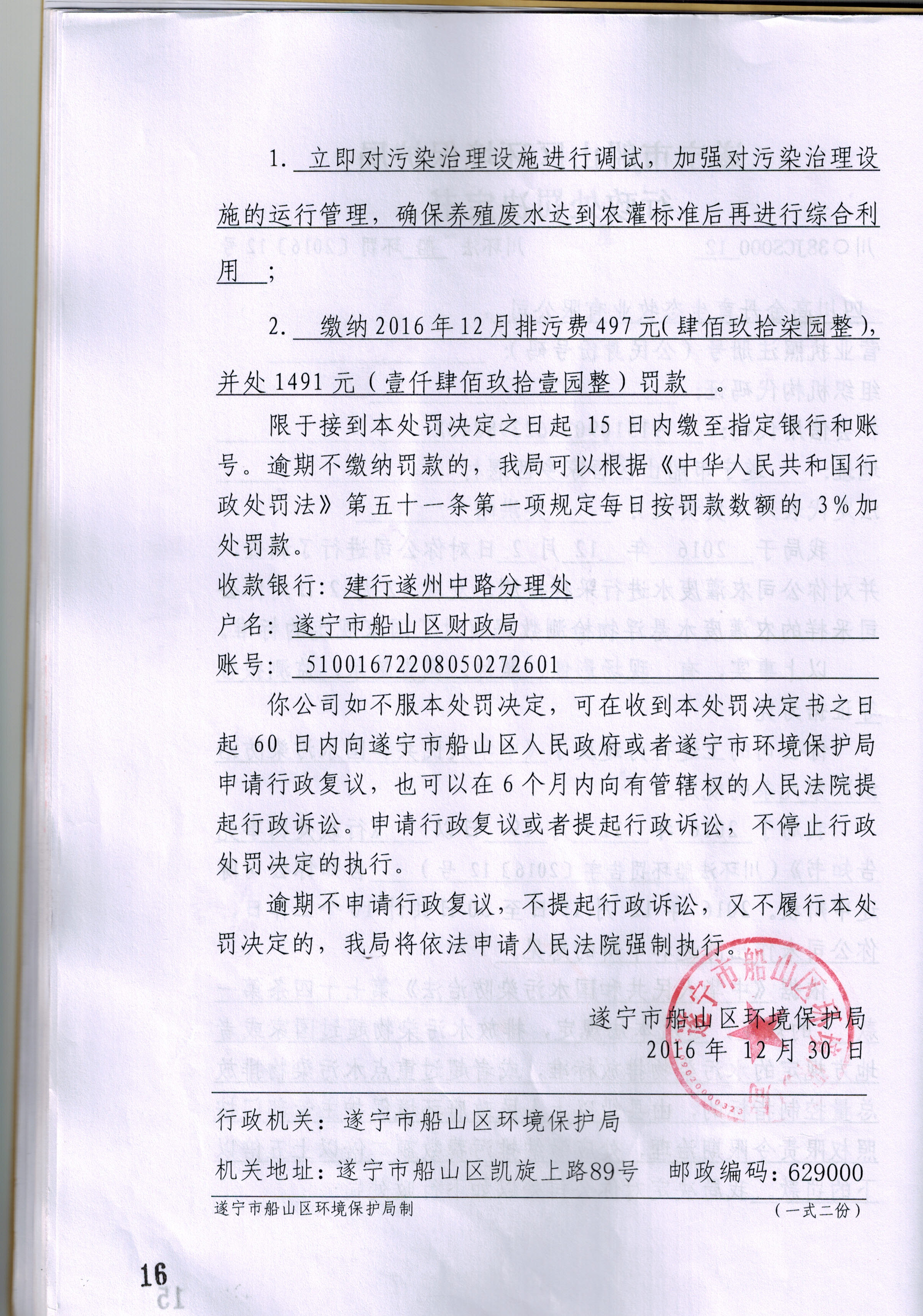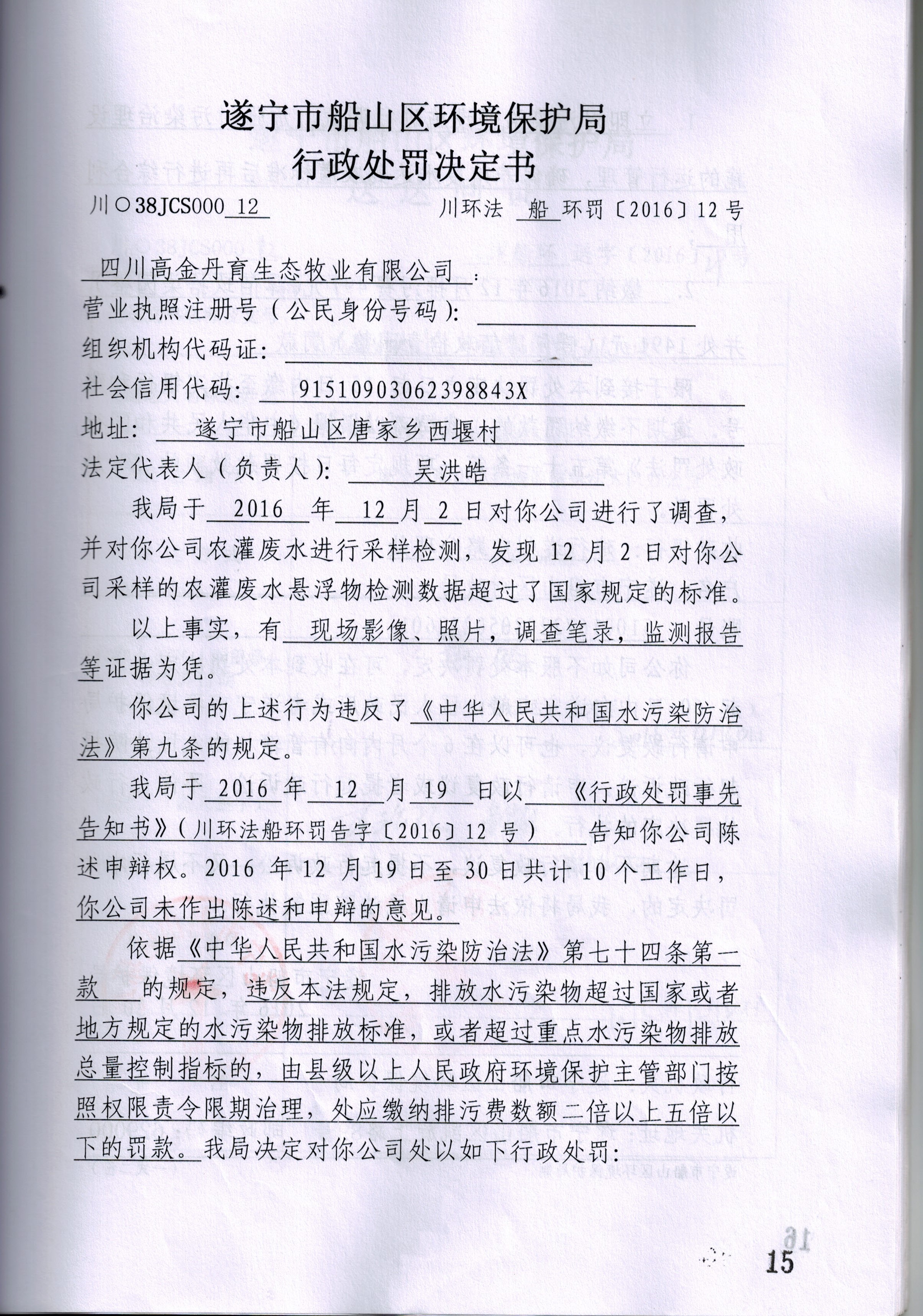 四川高金丹育生态牧业有限公司行政处罚决定书