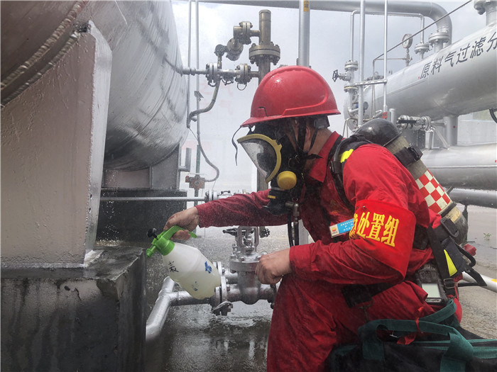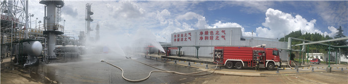 此次演练模拟了工厂净化装置过滤分离器大量硫化氢气体泄漏,一名巡检人员中毒倒地。现场人员立即向上级部门汇报,通知川中油气矿消防队、地方医院;隔离事故现场、疏散工厂及厂区周边人员、监测和稀释硫化氢气体浓度、装置停产泄压、法兰垫片更换、试压检漏、恢复生产;医疗人员赶到现场后对中毒人员立即进行救治。整个演练历时1个小时。