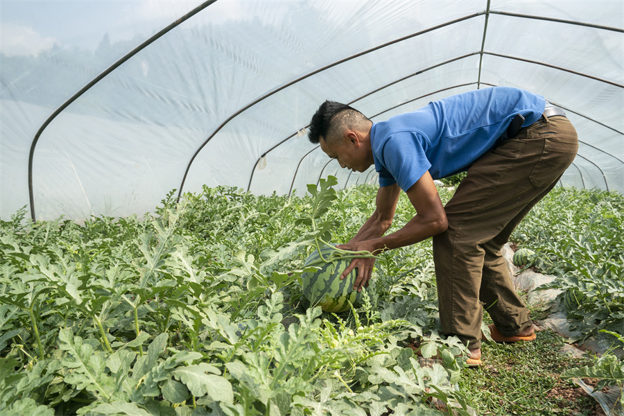 进入5月,在永兴镇联盟村大棚西瓜基地里,成熟的西瓜一个紧挨着一个,呈现出一派丰收的喜人景象。