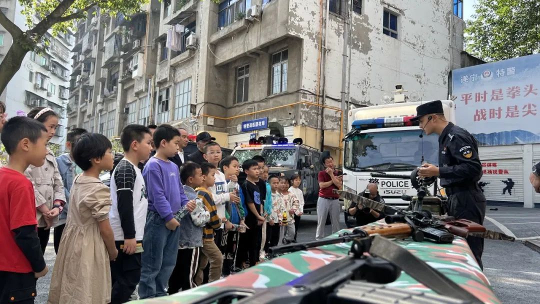 随后,特警队员向大家展示了无人机、防爆车、警用摩托车以及电击枪、手枪、手铐等警用装备,并用有趣的话语让孩子们了解到使用装备的场合以及防范坏人的相关知识。孩子们在确保安全的前提下,兴致勃勃地亲身体验了一回“小特警”。在警棍盾牌操和警犬表演中,孩子们被特警们英姿飒爽的气势和警犬敏捷的动作吸引,发出阵阵欢呼和掌声。