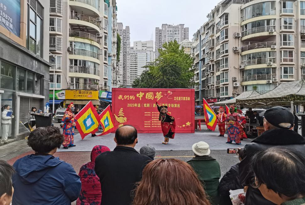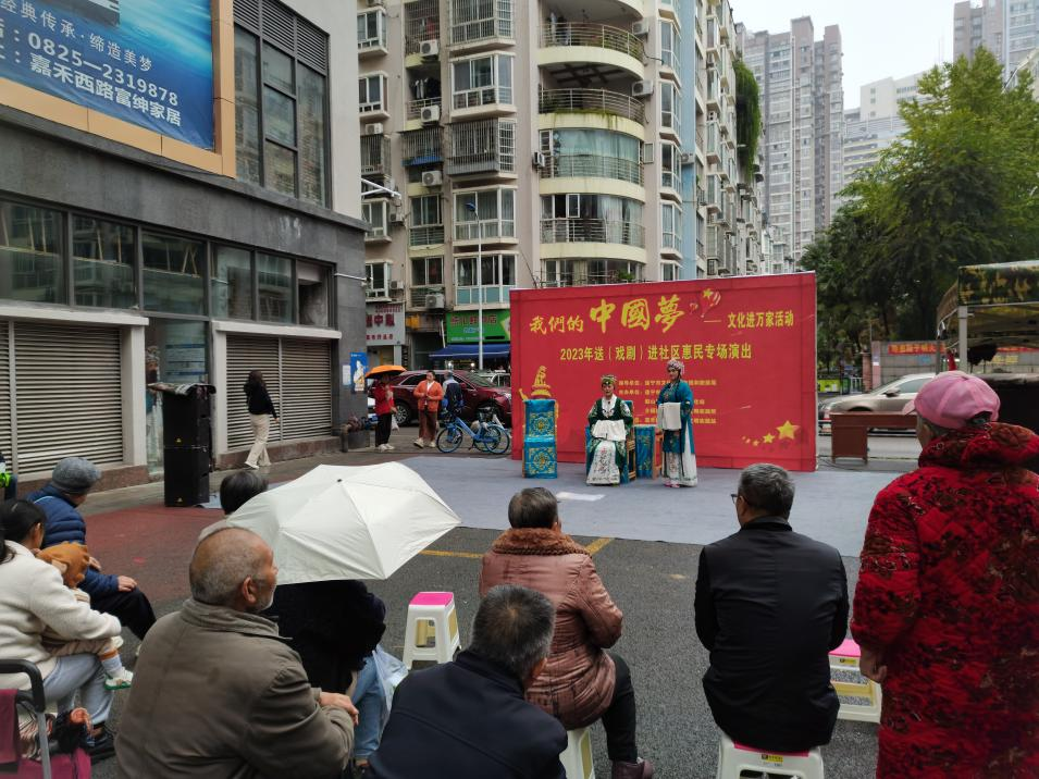 为落实文化惠民政策,传承中华优秀传统戏曲文化,满足社区居民的精神文化生活需求,2023年11月14日上午九点半,介福路街道办事处嘉禾桥社区新时代文明实践站在金色海岸小区门口开展“我们的中国梦”文化进万家惠民演出活动。