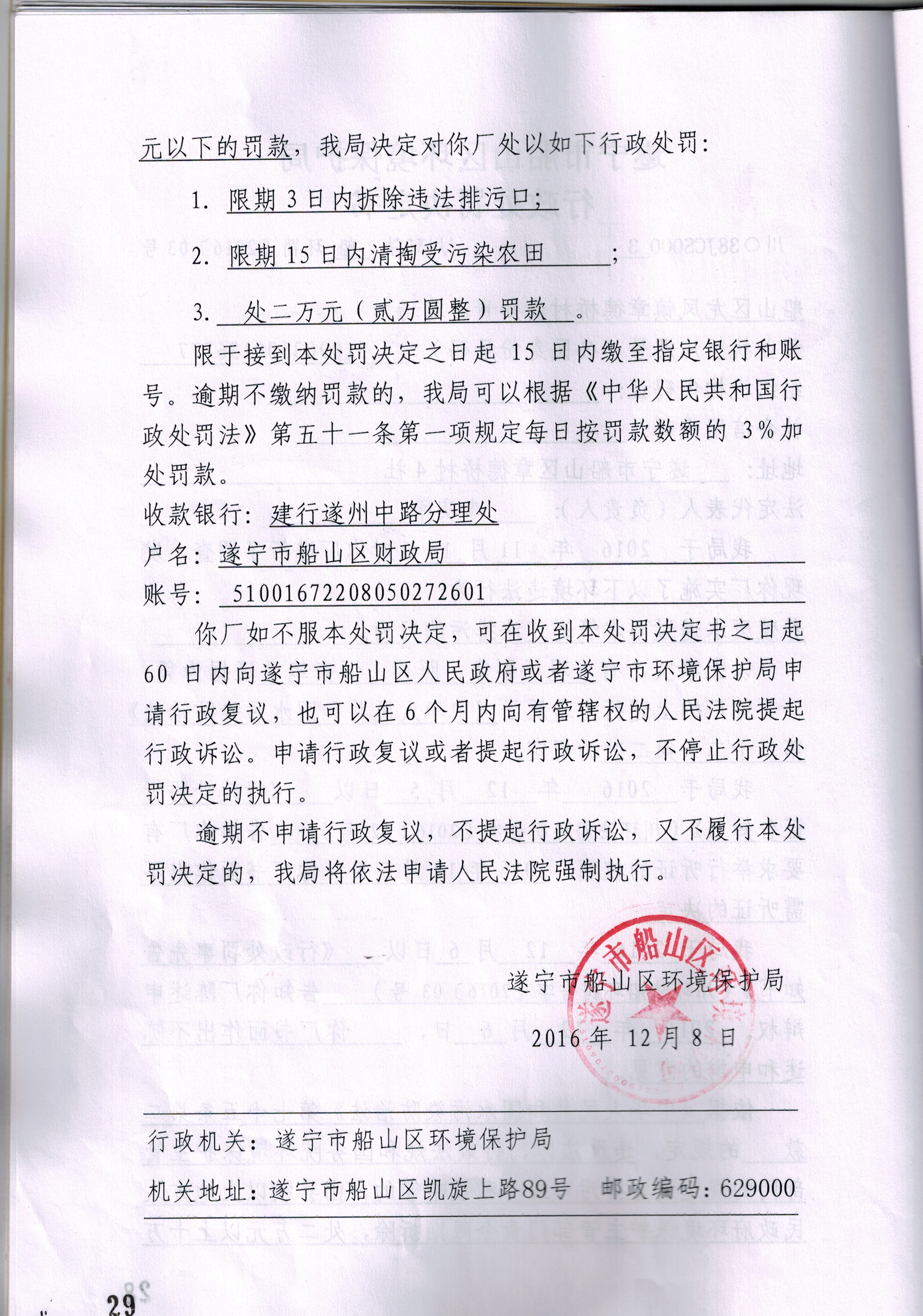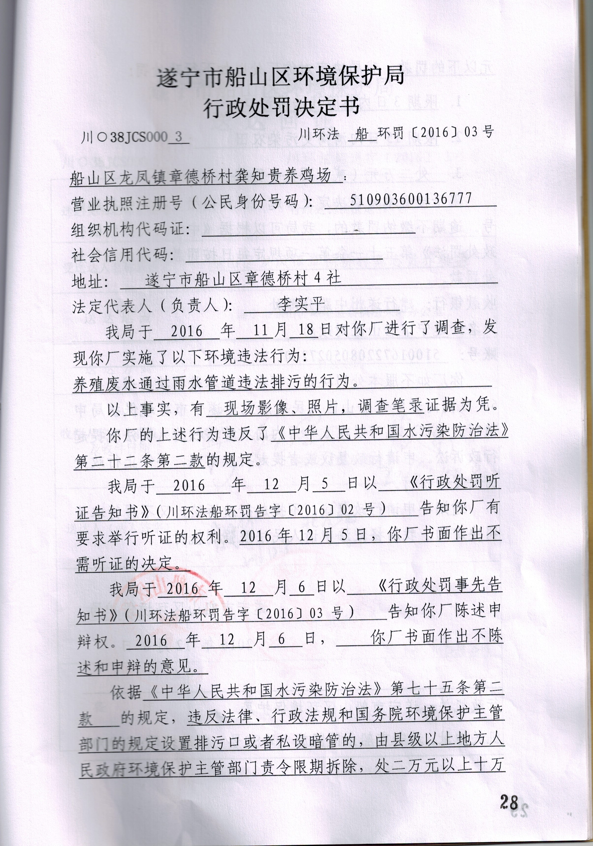 船山区龙凤镇章德桥村龚知贵养鸡场行政处罚决定书