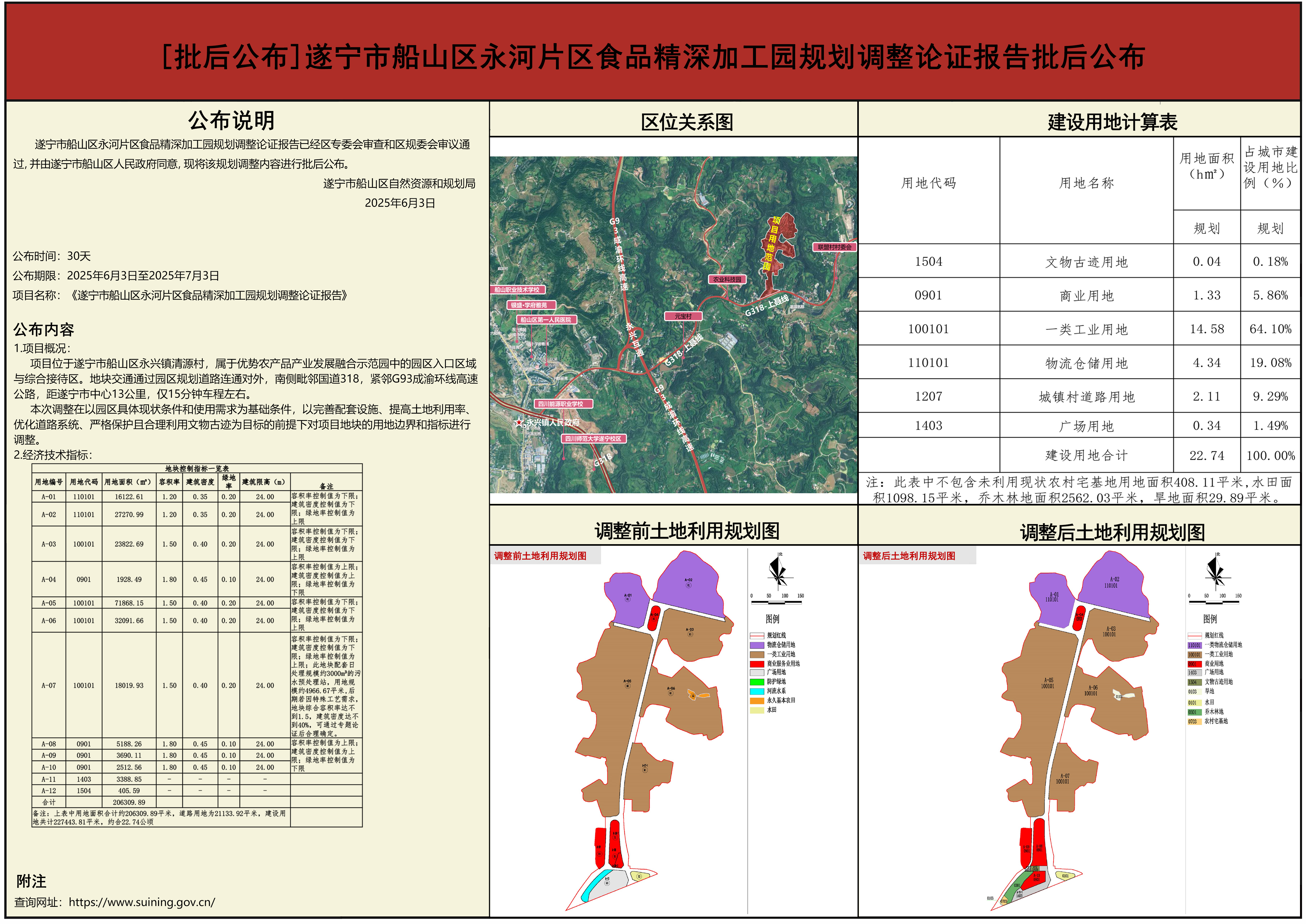 【批后公布】遂宁市船山区永河片区食品精深加工园规划调整论证报告批后公布