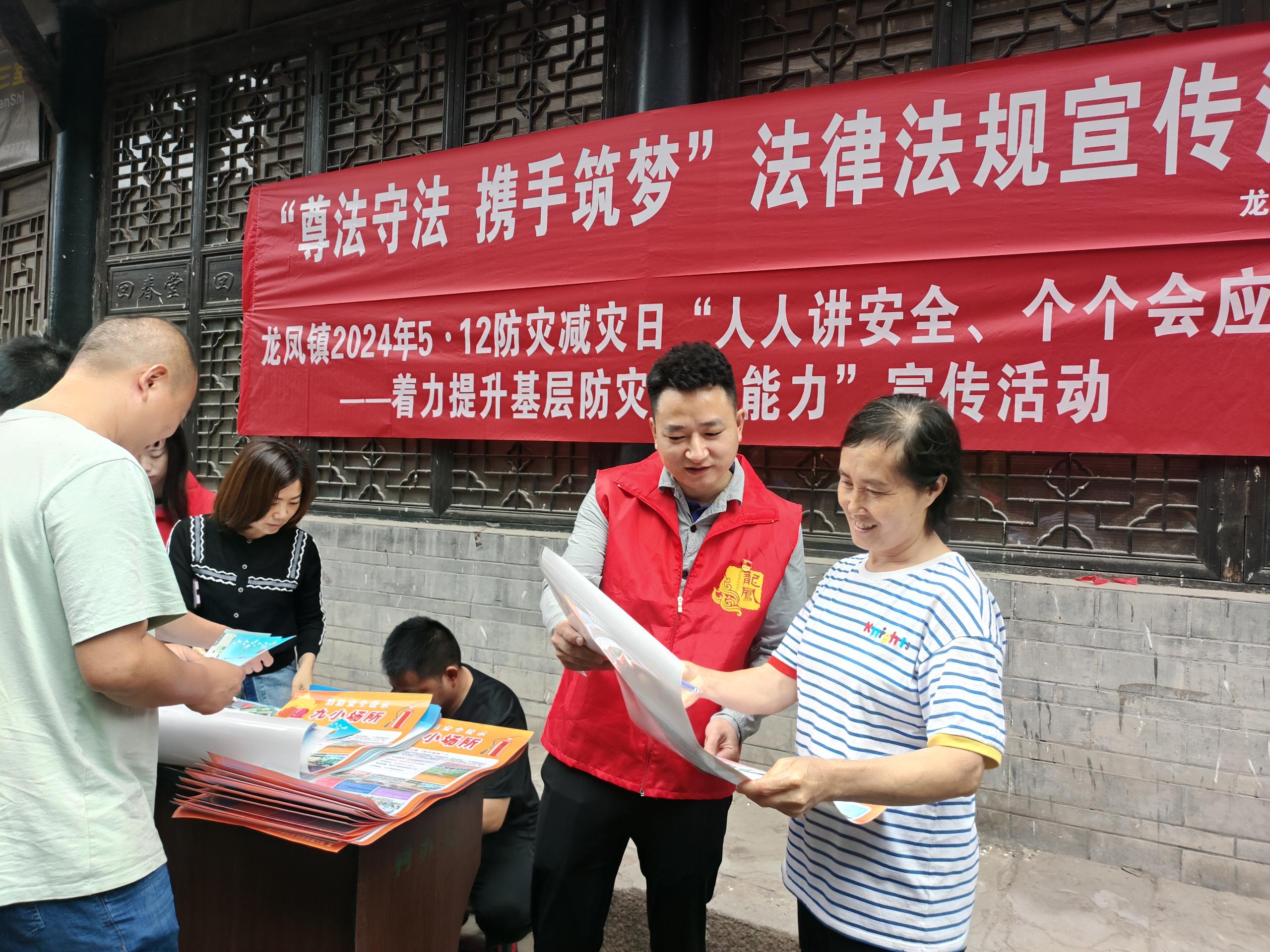 5月11日上午,为进一步普及防灾减灾知识,增强群众防灾减灾意识,龙凤镇组织开展以“人人讲安全、个个会应急,着力提升基层防灾避险能力”为主题的5·12防灾减灾日宣传活动。龙凤镇武装部部长兼副镇长席汉带领镇安办、龙凤派出所、经济发展办、龙凤工会、综合行政执法办等部门参加,向辖区群众宣传各类防灾减灾、自我防范、逃生避险、自救互救、安全生产、消防安全、燃气安全、交通安全等应急救援知识,进一步提高群众的防灾减灾避险逃生能力。