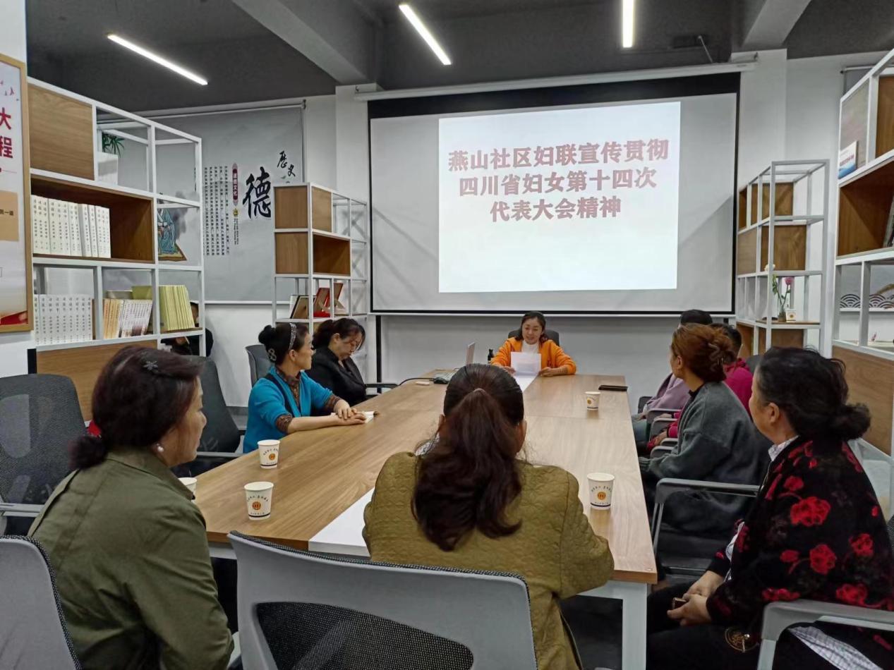 10月10日上午,介福路街道燕山社区妇联召开专题会议,传达学习四川省妇女第十四次代表大会精神。燕山社区妇女工作人员、辖区妇女及巾帼志愿者等参加会议。