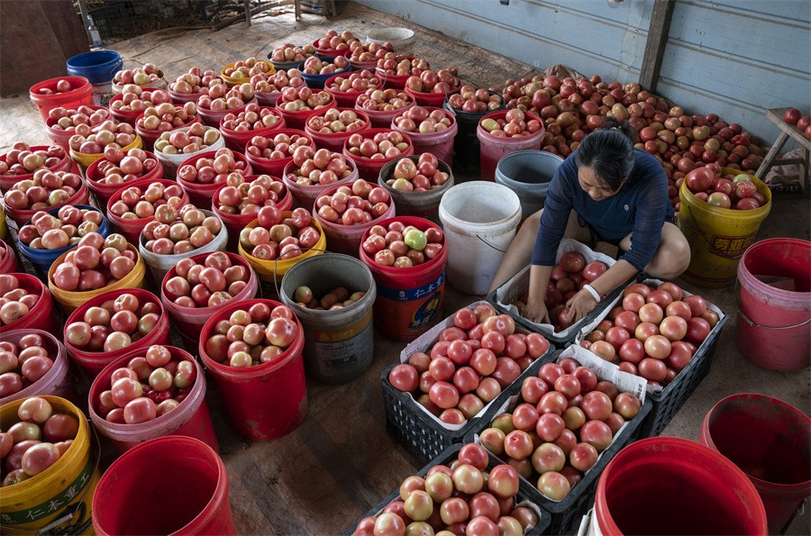 小小西红柿,映红致富路。进入6月,位于老池镇响水洞村7社的学田专业种植合作社的西红柿大量成熟上市销售。一个个红艳艳的西红柿挂满枝头,映衬着青翠欲滴的枝叶,分外诱人。学田专业种植合作社负责人林杰告诉记者,今年该合作社的西红柿种植面积为20余亩,目前正是批量成熟季节,每天采摘量在2吨左右,产品不愁销,主要销往遂宁纵横农副产品批发市场,每公斤批发价4元左右。