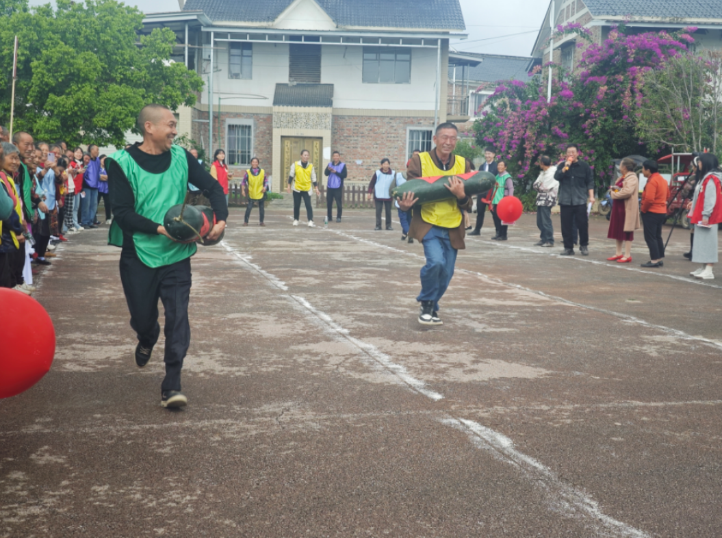 下午3点,趣味运动会在当地村民自编自演的歌舞表演中拉开序幕。本次趣味运动会根据老年人特点和爱好,设置了柚子保龄球、抱南瓜、双人夹气球等,这些项目玩法简单,娱乐性强。参赛的老人们积极参加各项比赛,全情投入,整个活动现场洋溢着欢乐的笑声。据了解,此次趣味运动会精心准备了6个适合不同年龄段老年人,体能消耗低、游戏趣味强的多人游戏竞技项目,让村里的老年人在参与游戏的过程中,感受到团结协作的氛围,进一步促进邻里关系和谐融洽,为当地接下来的乡村振兴工作凝心聚力。