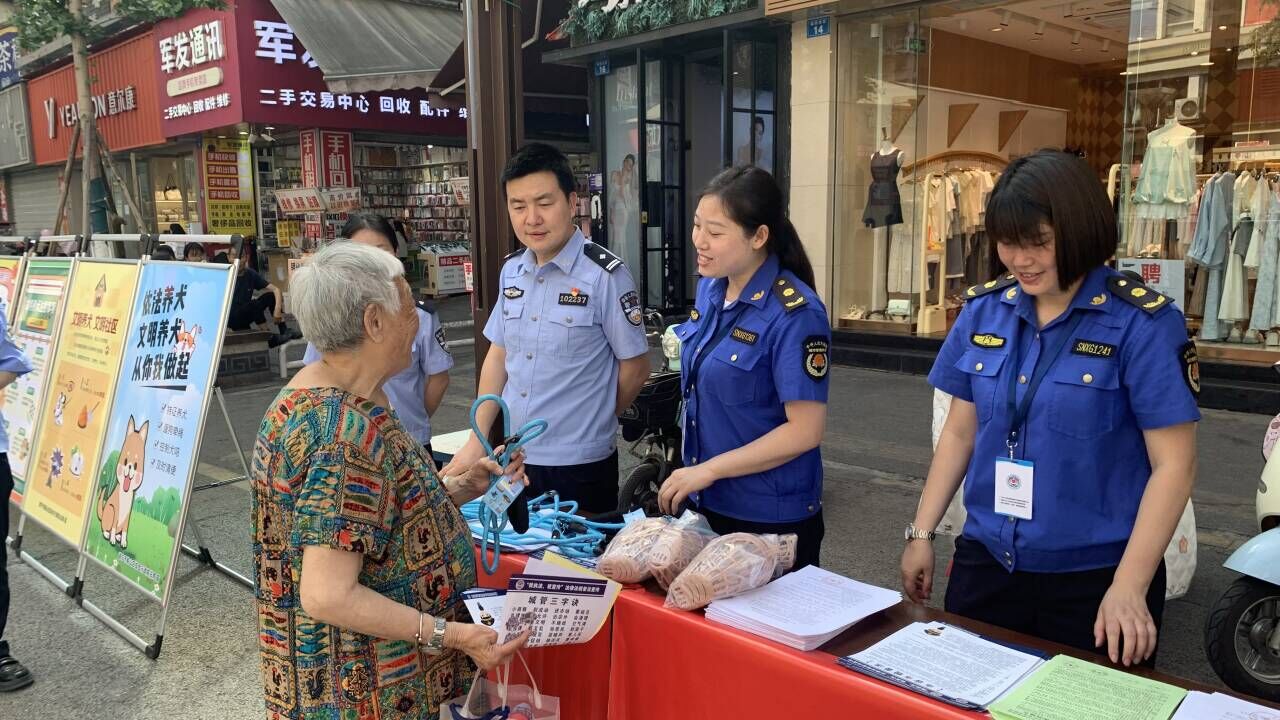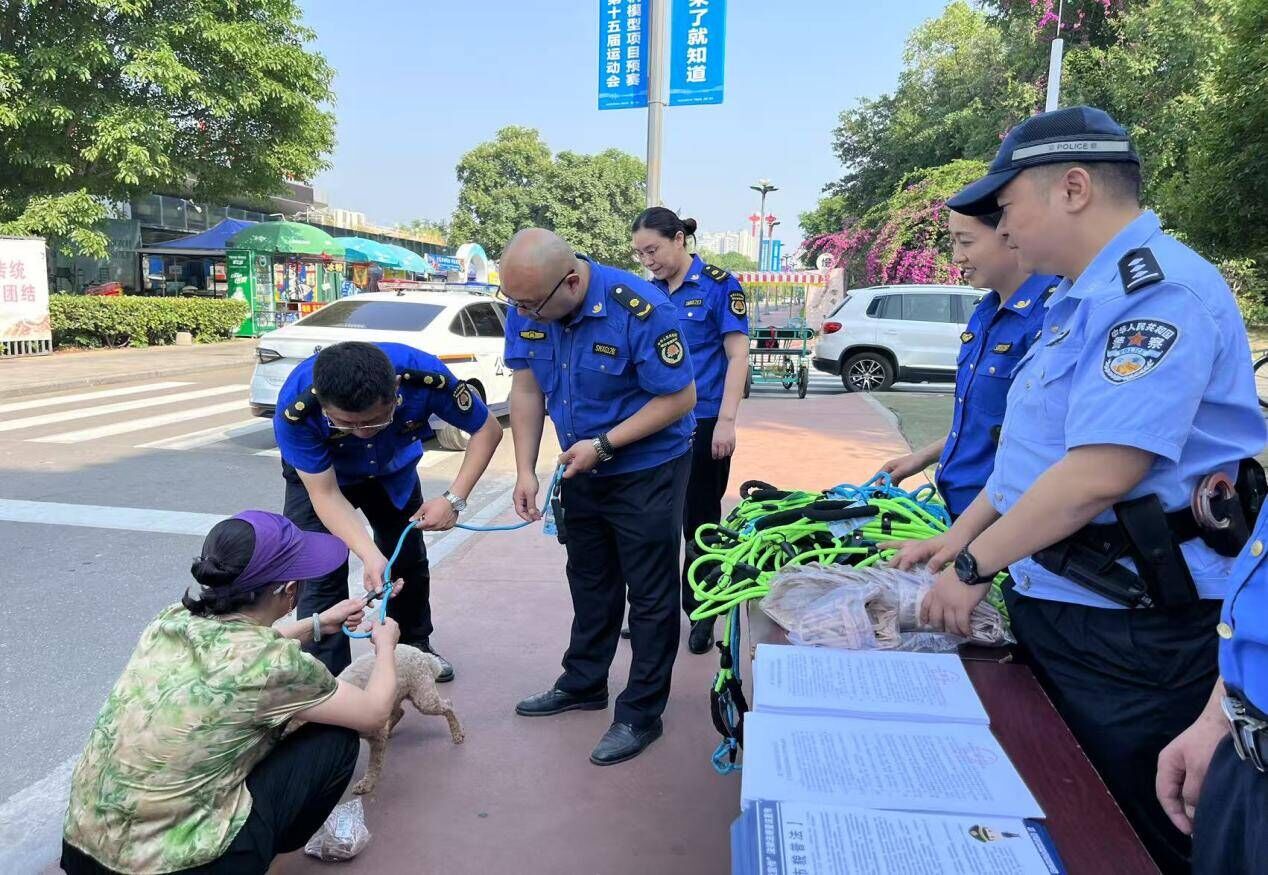活动现场通过设置科普展板、悬挂宣传横幅等方式,向市民普及犬只管理条例。执法队员向过往群众发放宣传手册,重点讲解遛狗不牵绳、不及时清理宠物排泄物、宠物违规进入公共场所等不文明行为的危害性,并向养狗家庭发放牵引绳、嘴套等犬只工具。