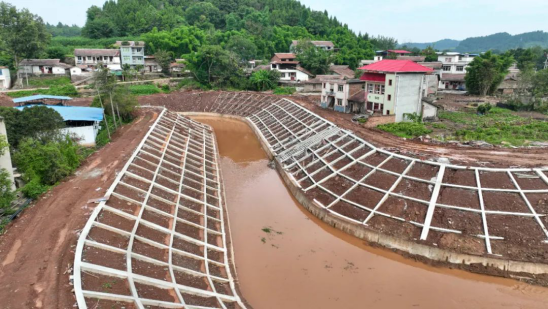 图为船山区老池镇2023年中央财政以工代赈项目排洪沟中的一段。累计完成投资350万元,投资完成率77.78%;完成排洪渠建设0.3千米,排洪沟建设5.94千米。