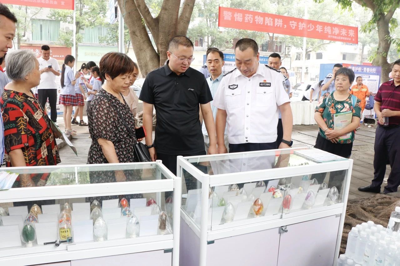 为深入贯彻落实习近平总书记关于禁毒工作的重要指示精神,增强全民禁毒意识和能力,在第38个“6·26国际禁毒日”当天,由船山区禁毒委员会主办的“禁毒护航·青春向阳暨船山区禁毒工作成效展”禁毒宣传活动在船山区裕丰园广场举行,旨在广泛动员社会力量参与禁毒斗争,营造和谐稳定的社会环境。区委常委、政法委书记、区禁毒委常务副主任陶虎,副区长、区禁毒委副主任、市公安局船山区分局局长刘茂森出席活动,并现场与市民互动交流。
